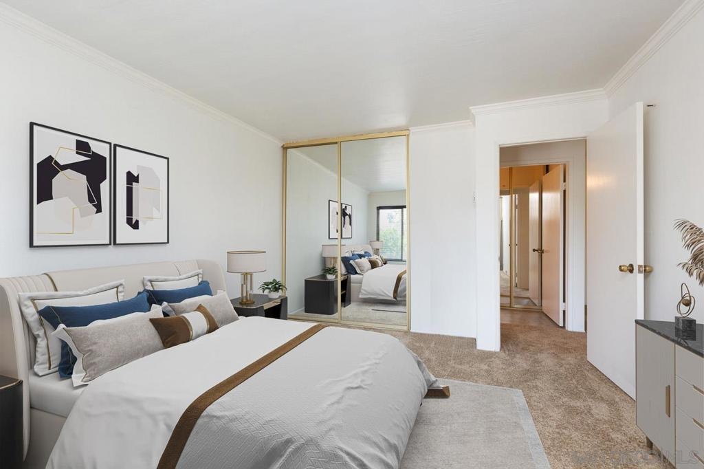 Great price for a great location! Must see! Spacious upper-level condo in the popular Rancho Mission Villas community. Virtually staged. Freshly painted with new carpet, this charming unit includes a custom bedroom window seat with storage, an extra built-in closet, and a private balcony with an east-facing view. Convenient parking includes an assigned space plus additional street parking out front. Prime Mission Valley location—next to Snapdragon Stadium, the trolley, 24-Hour Fitness, shopping, restaurants, and the historic San Diego Mission. Just minutes to SDSU, USD, and major freeways. Community amenities feature two pools, two spas, tennis courts, a clubhouse, a BBQ area, on site laundry room and a fitness center. Ideal opportunity for owner-occupant or investor in a central San Diego location!