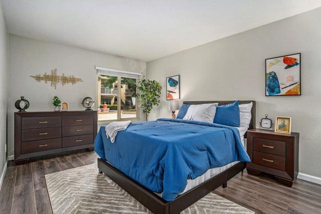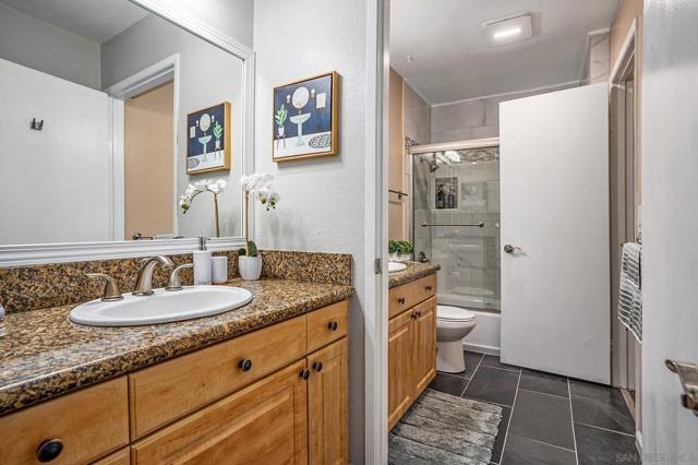 This "Move-In Ready" 2 bedroom 1.25 bath condo has been impeccably maintained and awaits its new owner! Step into this comfortable home with an open layout and a charming patio connecting to the living room, perfect for entertaining guests or enjoying time alone. The kitchen featuring granite countertops and stainless steel appliances extends out to the cozy dining room with ease. Granite countertops in bathroom and newly-remodeled tub surround. The primary bedroom is spacious and includes a separate vanity sink and walk-in closet for ultimate convenience. Lie on your bed and relax to the serene view and sounds of the water fountain right outside your window surrounded by lush landscaping. HOA fee includes water, trash pickup, and much more! The amenities are abundant including pools, fitness center, and clubhouse with pool tables and ping-pong. Conveniently located near shopping, dining, entertainment, and Snapdragon Stadium while providing easier access to these due to its super close proximity to the Trolley Station and major freeways. Hurry and make this wonderful home your own!