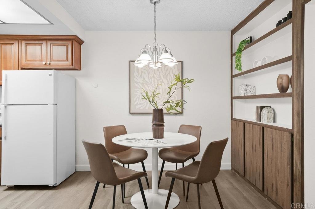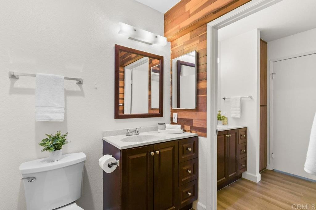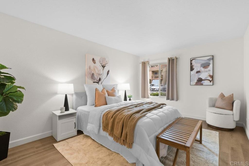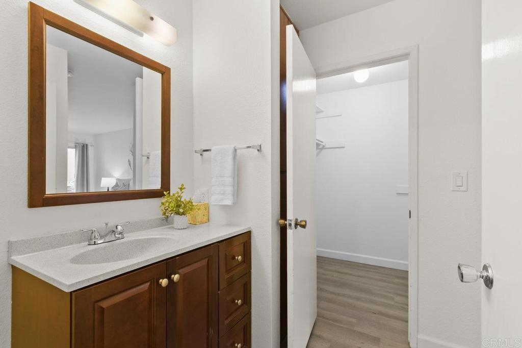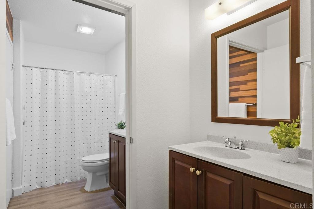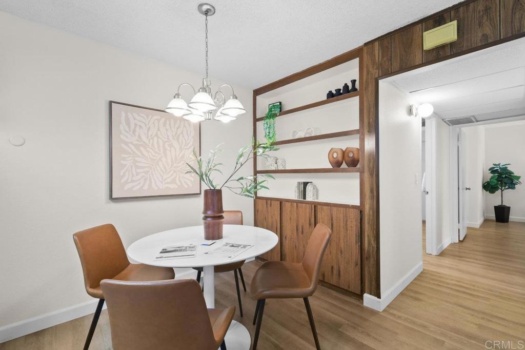 Central Mission Valley location, location, location... This charming two bedroom condo has been recently remodeled and upgraded including kitchen, baths, new paint, window coverings, and on trend LVP. The primary suite has a dressing area complete with a sink, access to the full bath, linen closet, and a roomy well lit walk in closet. There's a sunlit patio with a lush green artificial turf walking surface, a secure private storage closet, and a brand new retractable sunshade. Without the shade drawn enjoy views of the surrounding neighborhood and car park areas. Its the perfect spot for a potted plant garden. The Rancho Mission Villas' residents enjoy the manicured grounds with soothing water fountains. They also enjoy, extra guest parking, two pool areas with jacuzzies, picnic areas with furnishings, BBQ's, a gym, tennis courts, secured bathrooms, and a beautiful clubhouse for use and rules please see CC&R's. This residence is within walking distance of shopping, eateries, the trolley station, a popular gym, and the exciting Snapdragon Stadium. Imagine the convenience of taking a trolley steps from your residence to the east county, downtown, or to north to commuter routes. There is quick easy access to hiways 8 & 15 if you prefer to drive. There are professional grade laundry rooms conveniently disbursed through out the complex. Enjoy living in this dynamic community of Mission Valley. Homeownership has wonderful benefits and is affordable at this price. Welcome home to Rancho Mission Villas!