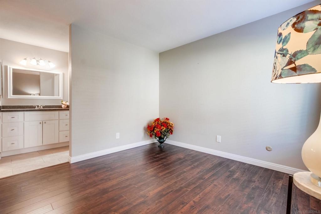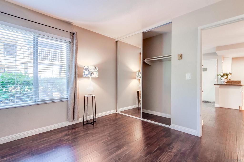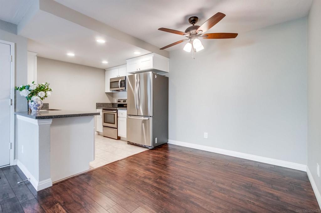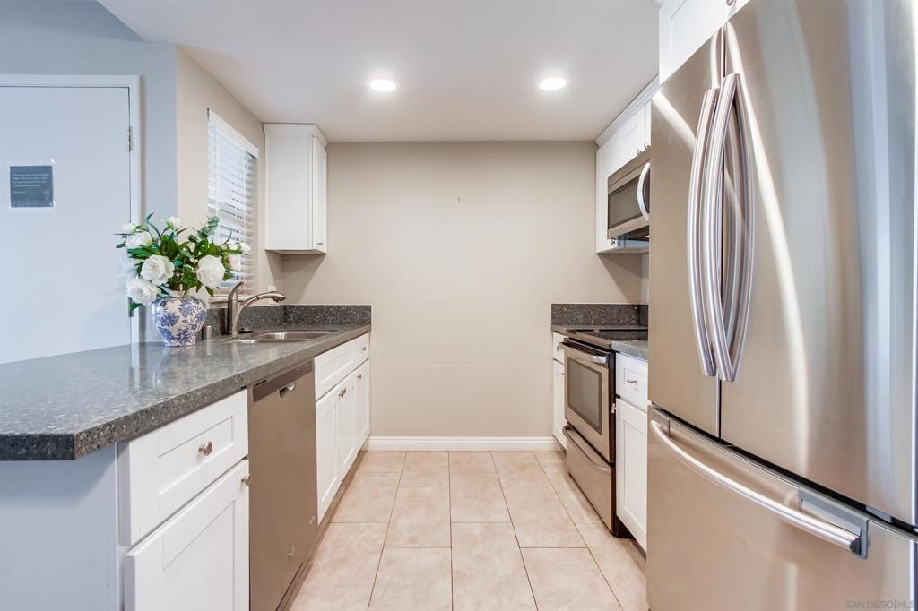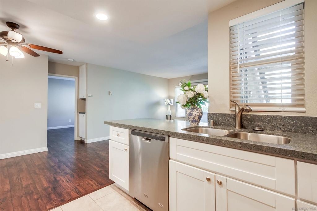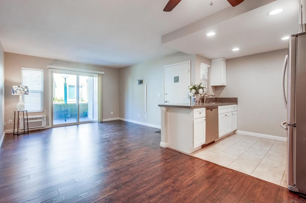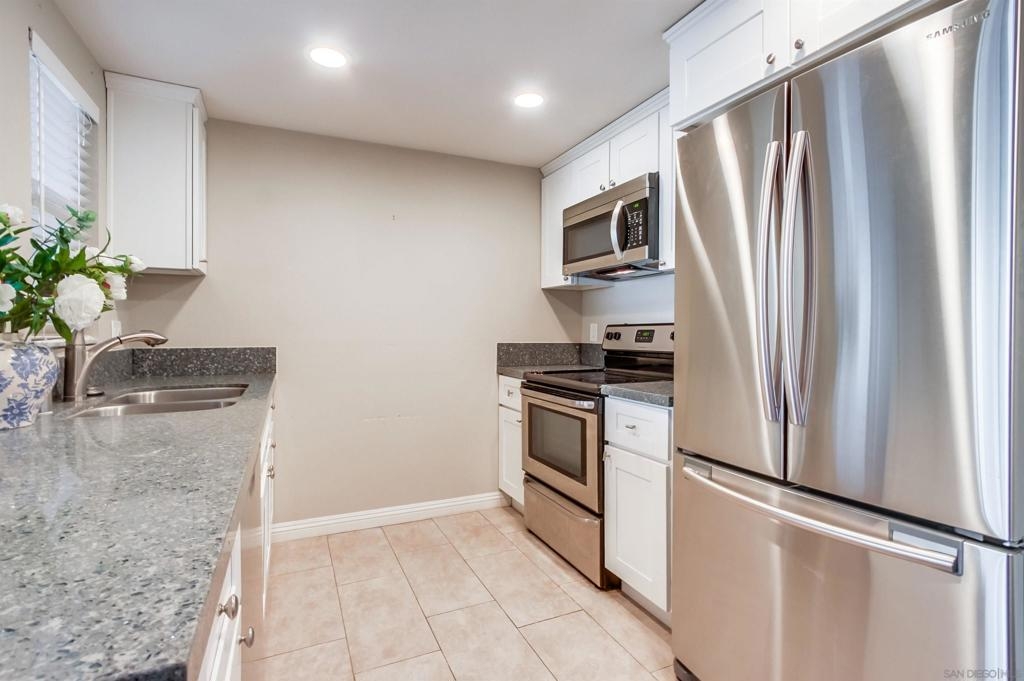 This beautifully remodeled 1-bedroom, 1-bathroom ground-floor condo offers the perfect blend of comfort and style. Step into a warm and inviting living space that flows seamlessly into a modern kitchen featuring updated appliances and ample storage. Enhancements also include elegant Laminate wood flooring and a contemporary bathroom vanity. Nestled in the heart of Mission Valley, Rancho Mission Villas offers a prime location with easy access to shopping, dining, and transportation. The well maintained community is surrounded by lush greenery and boasts exceptional amenities.
