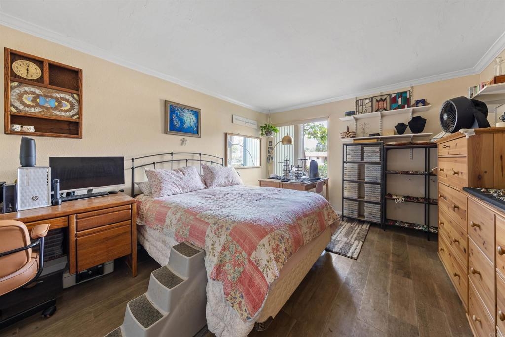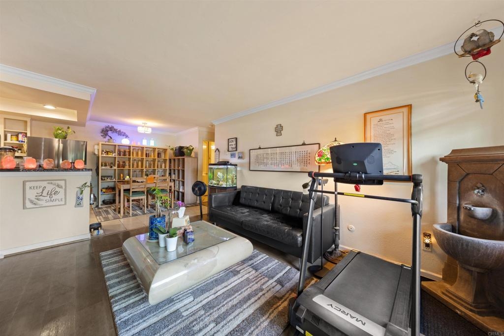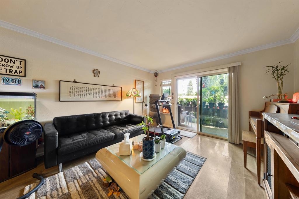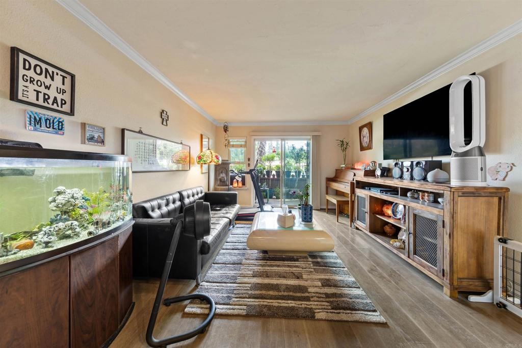 Fabulous central location and desired downstairs condo, ideally situated in the center of San Diego County offers 1 bedroom 1 bath 604 square feet of living space. Enjoy unbeatable convenience just minutes from Snapdragon Stadium, 24-Hour Fitness, Fashion and Mission Valley malls, and near restaurants, entertainment, shopping centers and close proximity to easy freeway access. The home features LVP flooring in the living room and crown molding and tile flooring in the kitchen. The kitchen features wood cabinetry, granite countertops with backsplash and stainless steel stove, refrigerator and microwave. Enjoy your morning coffee on your private covered patio with storage which seamlessly connects to the living room. Hallway bathroom features vanity lighting and combination shower/tub. The bright and open primary bedroom has wood flooring and crown molding. Community amenities include pool, tennis courts, laundry room and fitness center. Located close to SDSU, Mission Trails Hiking, Lake Murray and 20 minutes to the beaches!