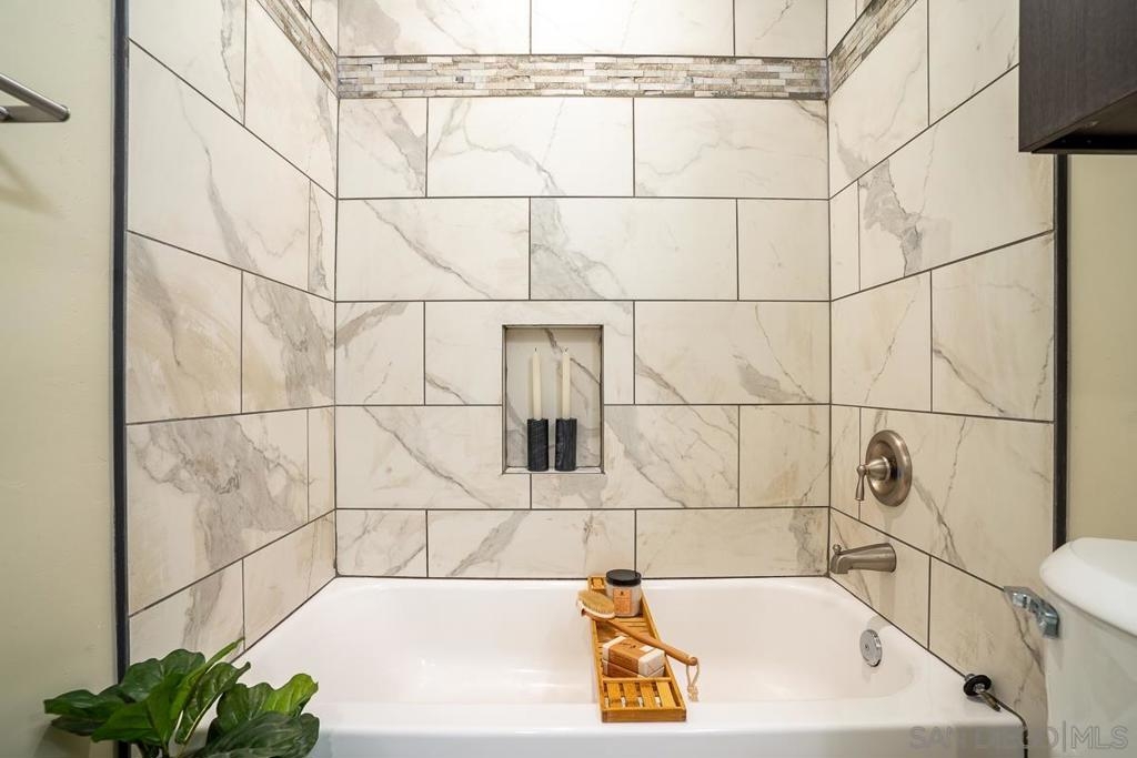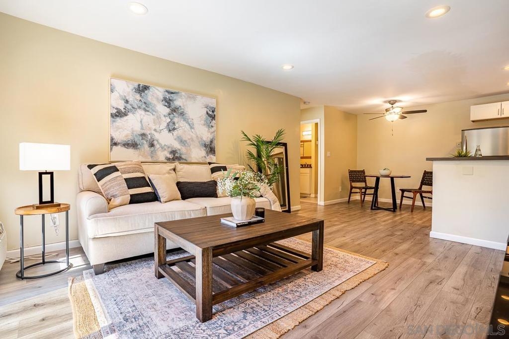 Welcome to resort style living in the heart of San Diego! Best location and largest 1-bedroom model in Rancho Mission Villas with lots of light and garden-like views from the living room and both bedroom windows. This beautifully well kept and clean corner unit condo boasts a modern kitchen w shaker cabinets, quartz counters, and full appliance package; a stunning bathroom with vanity, lighting, tile flooring, and fully tiled shower surround. Add’l features are laminate flooring in the living and dine, cozy carpeting in the bedroom; LED recessed lights w dimmers throughout, dual pane windows, wall AC, and quiet complex location. Enjoy two pools and spas, Rec Room/ Clubhouse equipped with pool and ping pong tables, exercise room, sauna, 2 tennis courts, basketball courts, and BBQ areas. The grounds are very well kept and beautiful. Central location with walking distance to restaurants and more, and less than a minute drive to the 8 and 15 freeways. Complex Features: ,,,,,,,, Sewer: Sewer Connected