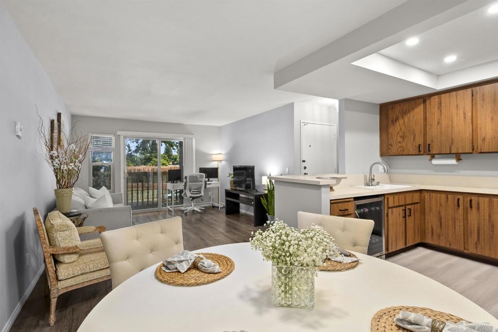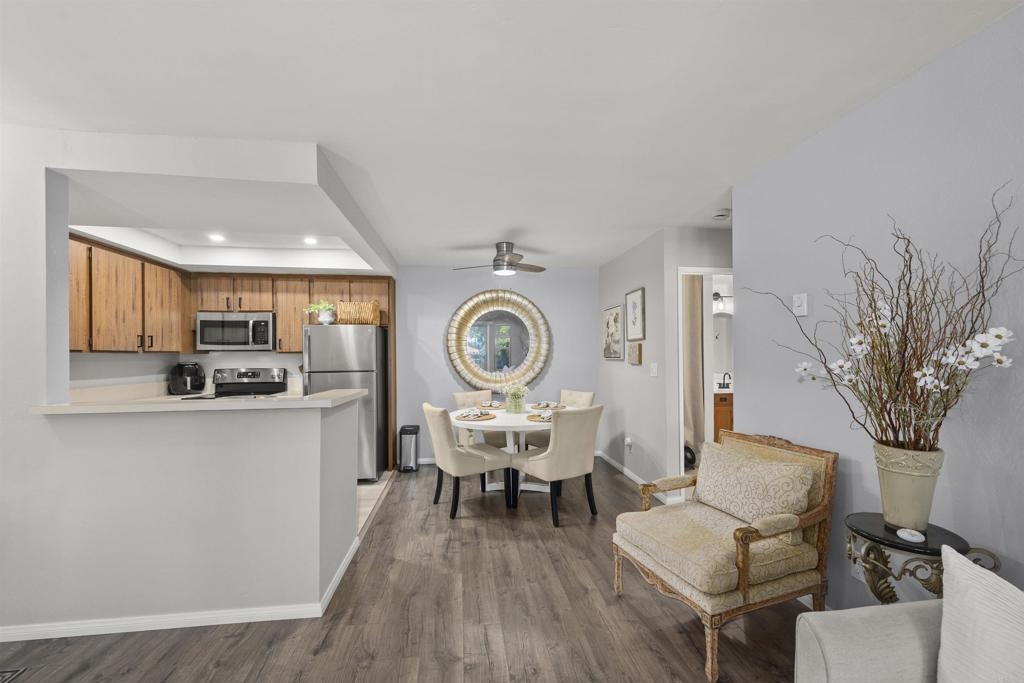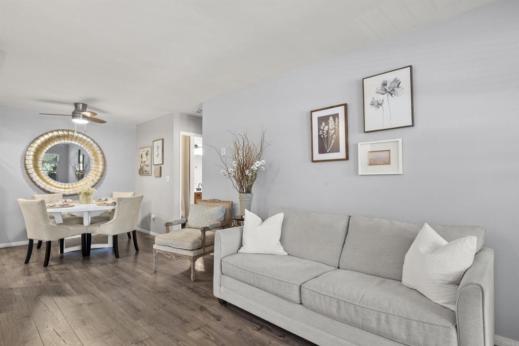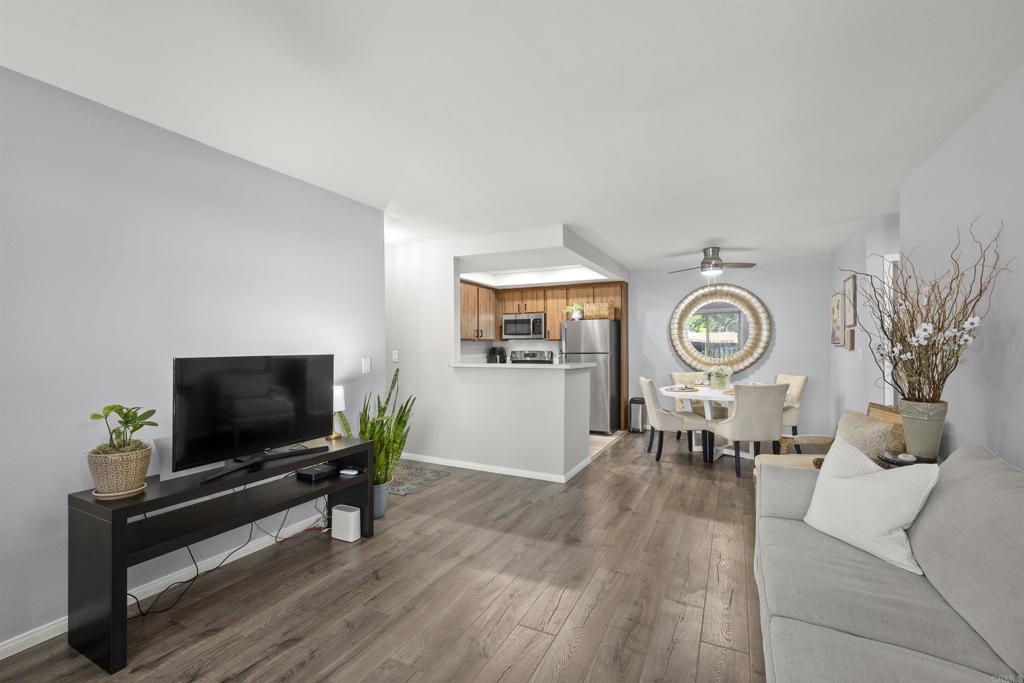 Beautiful condo located in the heart of Mission Valley, minutes from shopping centers, malls, snapdragon stadium, freeway access and much more. A must see upgraded unit, home features stainless steel appliances, laminate floors, in wall AC unit, 1 car space, private balcony and much more.