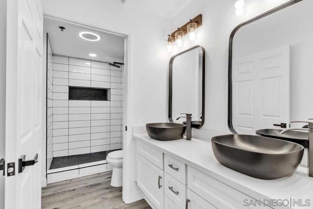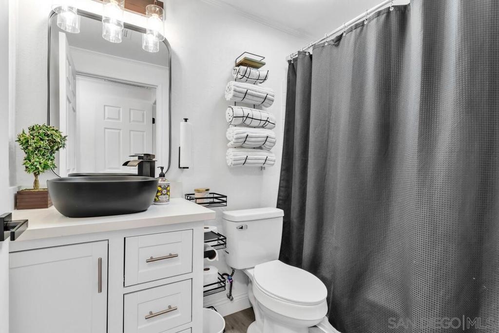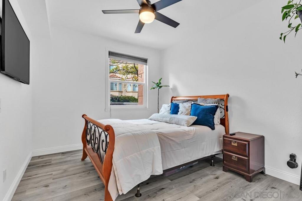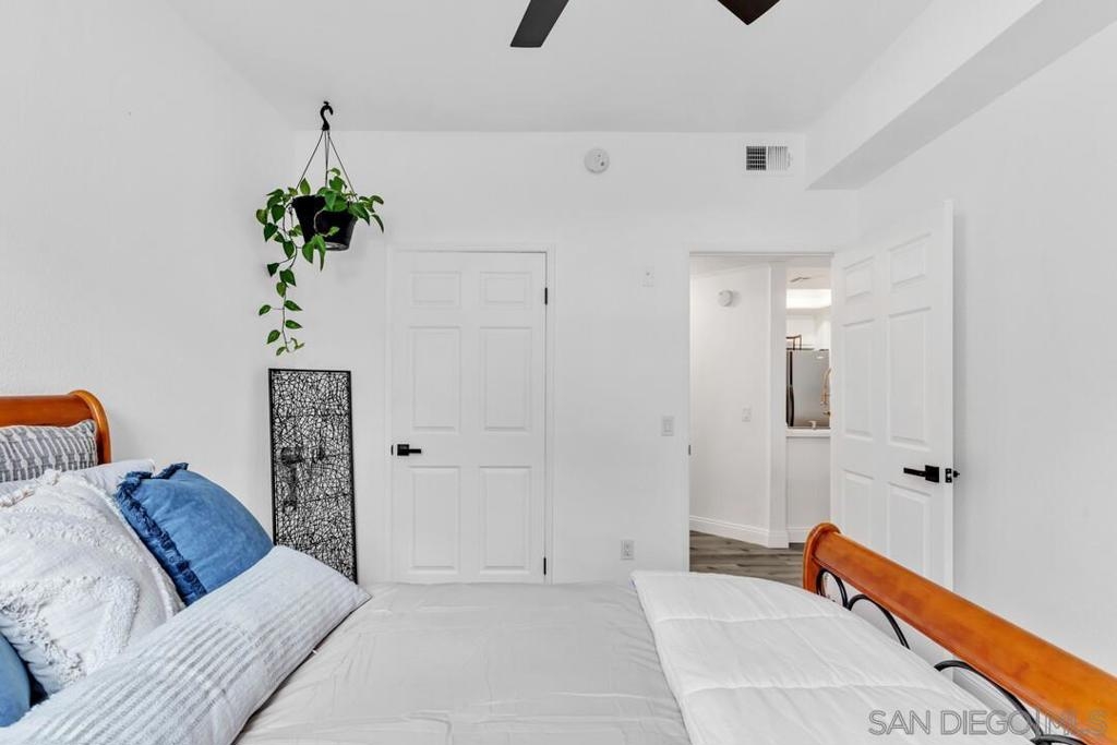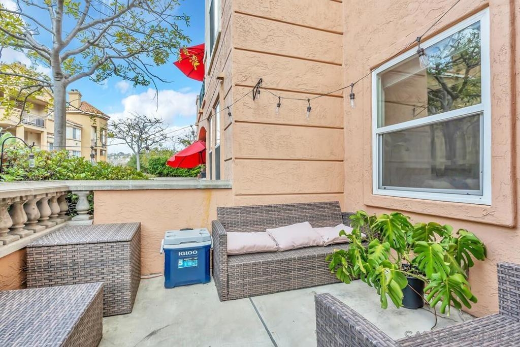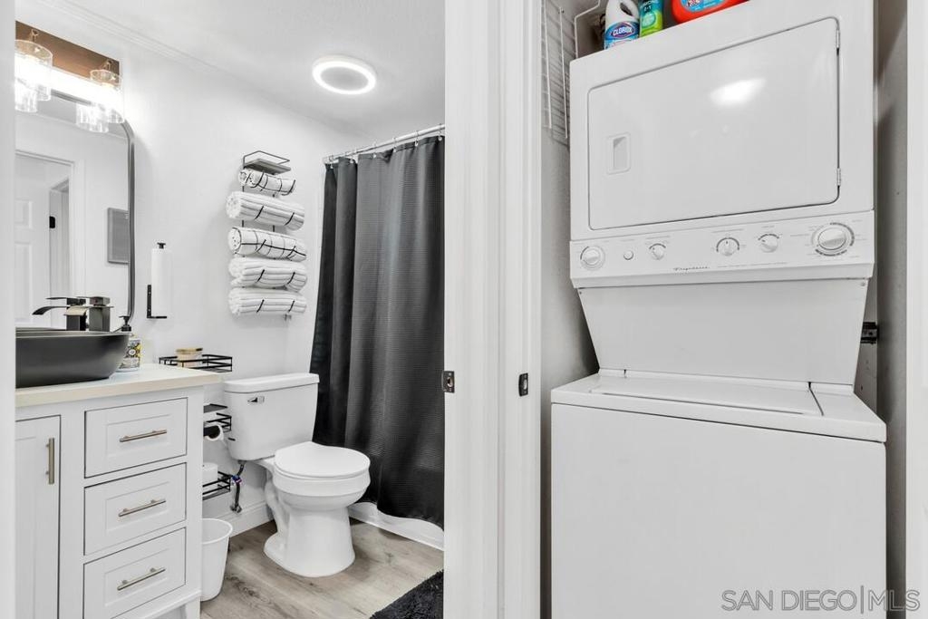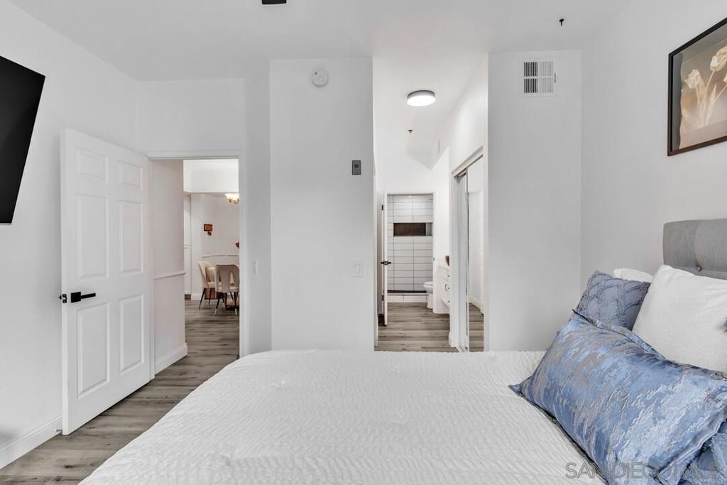 Light, bright and updated well maintained first floor Mission Valley condo in concrete building with gated under-ground parking with two assigned parking spots #76 and #122, and courtyards with manicured landscaping. All flooring updated. Quartz countertops in kitchen. White shaker cabinets in the kitchen. Primary bedroom has ensuite bathroom. Extra large balcony. Updated windows and sliding glass door, recessed ceiling and lighting in the kitchen. The A/C was replaced in 2015. Fridge, washer & dryer all convey. Water covered with HOA. Walk across the street to some of San Diego's finest cuisine, coffee shops and retail. Central to downtown, beaches and Universities.