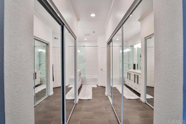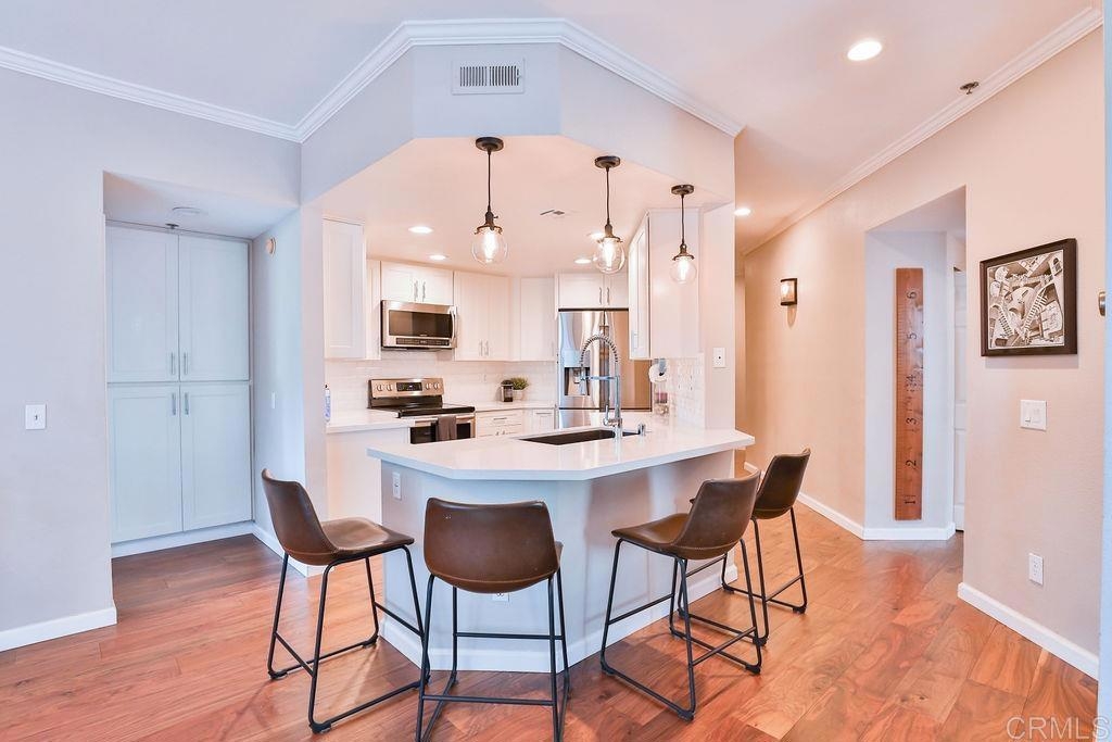 Looking for a condo that lives like a townhouse? Well, look no further. This first floor, end unit is your own little oasis in Mission Valley. Updates abound to include new flooring, stainless steel appliances, crown moulding, designer light fixtures and double-sided fireplace...all within the beautifully maintained community of Rio Del Oro. Host a fun soiree on one of the largest patios in the complex that looks out to the San Diego River Trail. A great place for a morning run, walk or bike ride. A small dog park is also close by. It's an easy walk to Coffee Bean, Trader Joe's and Shake Shack and a short drive to the golf course, Fashion Valley Mall and freeways.
