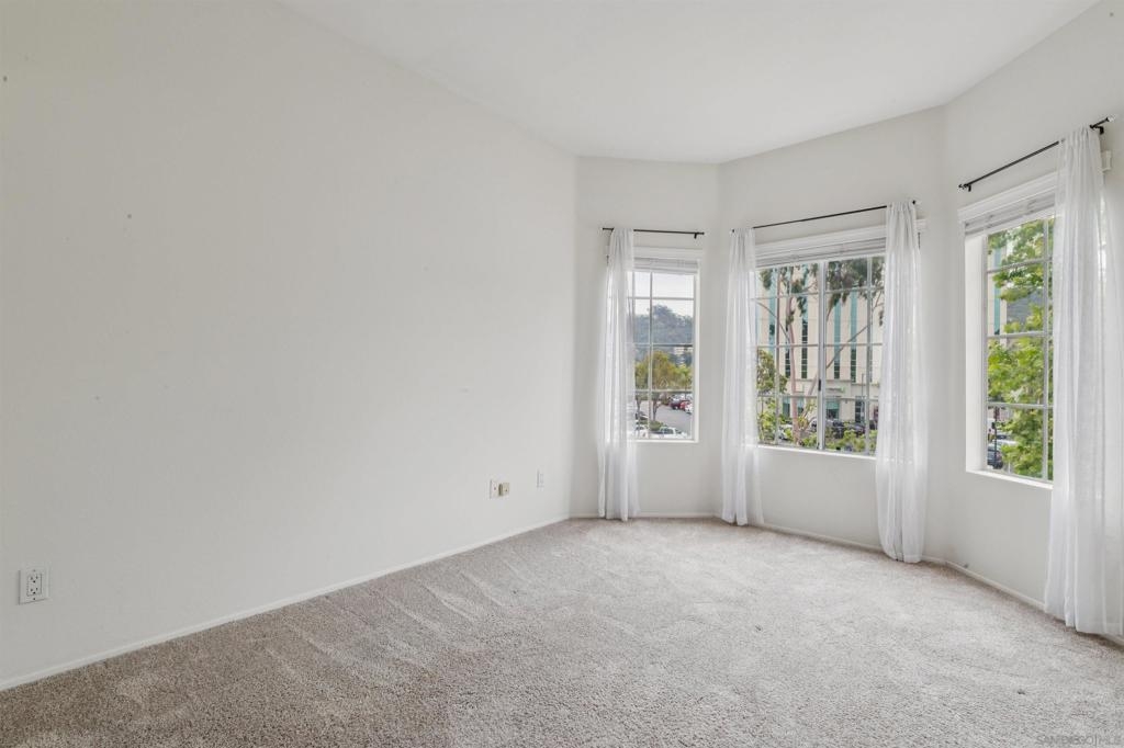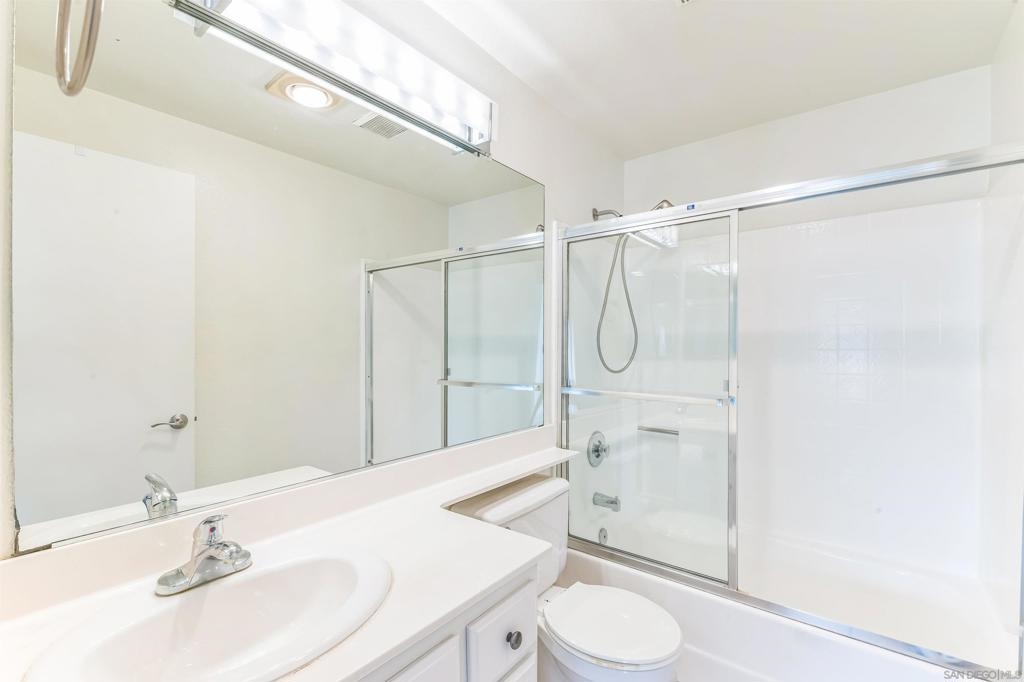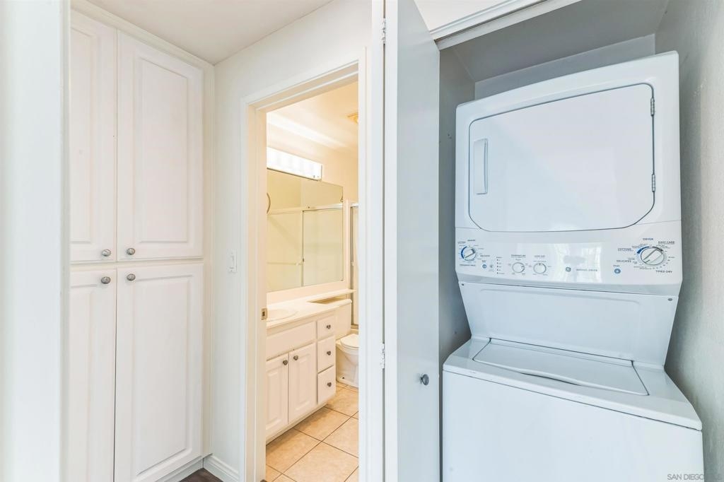 Light & bright updated 2-bedroom condo in the heart of Mission Valley close to the Trolley, Fashion Valley & Mission Valley Malls, Snapdragon Stadium, & Downtown San Diego! Located on the second floor, this unit boasts a private balcony area, perfect for enjoying the San Diego sun. Featuring a gas fireplace in the living room, laminate wood flooring in the main living areas, neutral carpet in both bedrooms, crisp white cabinetry & plenty of closet storage. The primary suite has an ensuite bath & dual closets with mirrored doors. In-unit stacked W/D! Two dedicated underground parking spaces plus guest parking in the community. Residents enjoy the use of a sparkling pool, spa, gym, & the peace of mind of living in a secure & gated community.