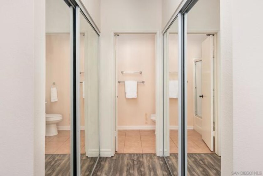 Highly desirable, top floor, River Colony condominium. Open floor plan with the living space dividing the bedrooms. Wood burning fireplace. Spacious bedrooms with abundant closet space. Hard surface flooring throughout. In-unit laundry. West-facing balcony off the living room. River Colony features a resort style pool area and gym. Located on the banks of the San Diego River. Walk to the Trolley, shopping, and dining. A great value and a true must see! Equipment: Dryer, Range/Oven, Washer Sewer: Sewer Connected Topography: LL