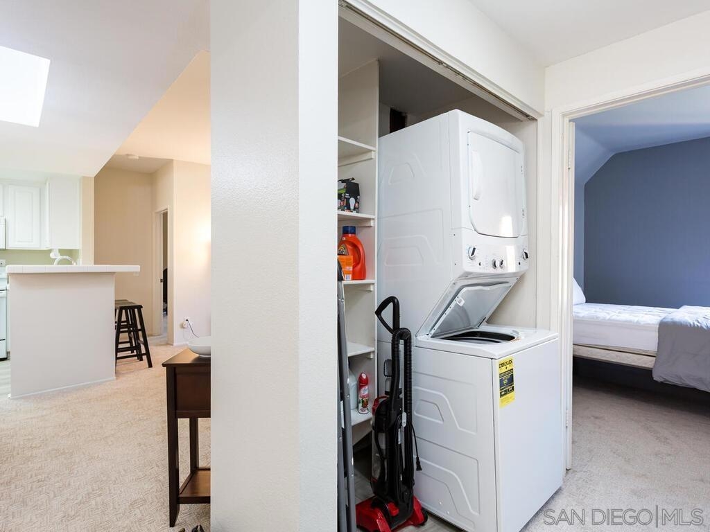 Quiet first-floor unit in River Colony! It is close to the resort-style pool and clubhouse. The owner has recently painted, installed new flooring, and updated appliances, including an almost new dishwasher and washer/dryer; A/C was recently serviced. This condo comes with space for two vehicles in the underground parking garage. The parking location is secure and close to your unit, with no stairs from the parking to the elevator to your unit. This is the desirable split floorplan model with the bedrooms and baths on each side and the living between. It also features a large patio off the living room. Furniture and furnishings can also be included for zero value. The River Colony community is steps from Mission Valley Mall, the trolley, Snapdragon Stadium, just a few minutes from downtown, Petco Park, the beaches, and USD and SDSU. There is a walking and hiking trail along the San Diego River.
