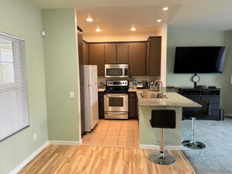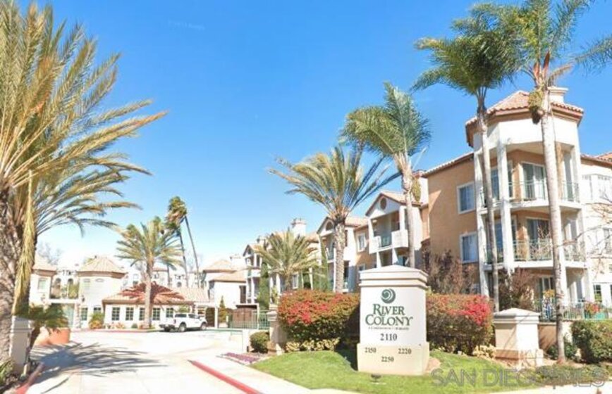 River Colony Sought After Complex. Terrific central location. Tons of amenities. Mission Valley. Top Floor-End Unit with balcony over looking interior courtyard. Facing east to catch the early sunshine. Open Kitchen w/breakfast bar. Living room-dining area combo including a fireplace. Spacious bedroom with walk-in closet. In unit laundry with stacked appliances. Balcony has extra storage closet. Renovated bath. Windows have been replaced. Central Heating and A/C. Nearby with easy access to shopping, dining, universities, downtown San Diego and public transportation. Discover the nature trails of the San Diego River. Elevator close to unit and to common parking garage. River Colony - just a hop to shopping, dining! Near Universities! Trolley! Presenting one-bedroom condo situated on the top floor-end unit, offering a modern open floor plan. The living room features a fireplace, adding a touch of warmth and sophistication. The bedroom is equipped with a walk-in closet, providing ample storage space. A balcony facing east overlooks the interior courtyard, offering a lovely outdoor space. Convenience is enhanced with an in-unit washer/dryer and an additional storage closet accessible from the balcony. Security within the unit is ensured through a leased security system. Included is one parking space in the secure underground garage. This property combines functionality with comfort, making it an ideal choice for those seeking a refined living experience in Mission Valley. Light Fixer--Fireplace wood burning-also with electric insert.