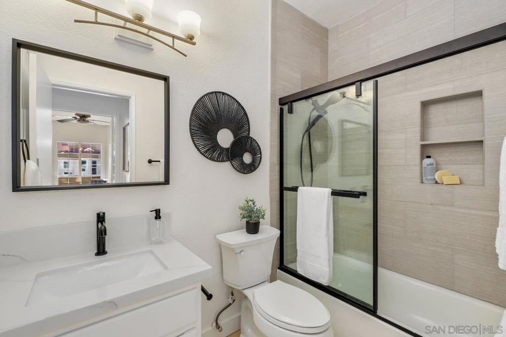 Welcome to this beautifully updated 1-bedroom condo located in the desirable River Colony community in the heart of Mission Valley! This move-in ready home features brand new LVP flooring, fresh paint, and new carpet in the bedroom. The granite kitchen with white cabinetry and stainless steel appliances opens seamlessly to the living area, complete with a cozy fireplace and access to your own private patio—perfect for enjoying San Diego’s indoor-outdoor lifestyle. The spacious bedroom boasts charming bay windows and a walk-in closet, while the updated bathroom offers custom tile work and ample storage. Additional highlights include central AC, in-unit washer/dryer, and gated underground parking. Enjoy resort-style living with access to River Colony’s pool, spa, and gym. Conveniently located near shops, restaurants, public transportation, and everything Mission Valley has to offer. Come experience it for yourself!