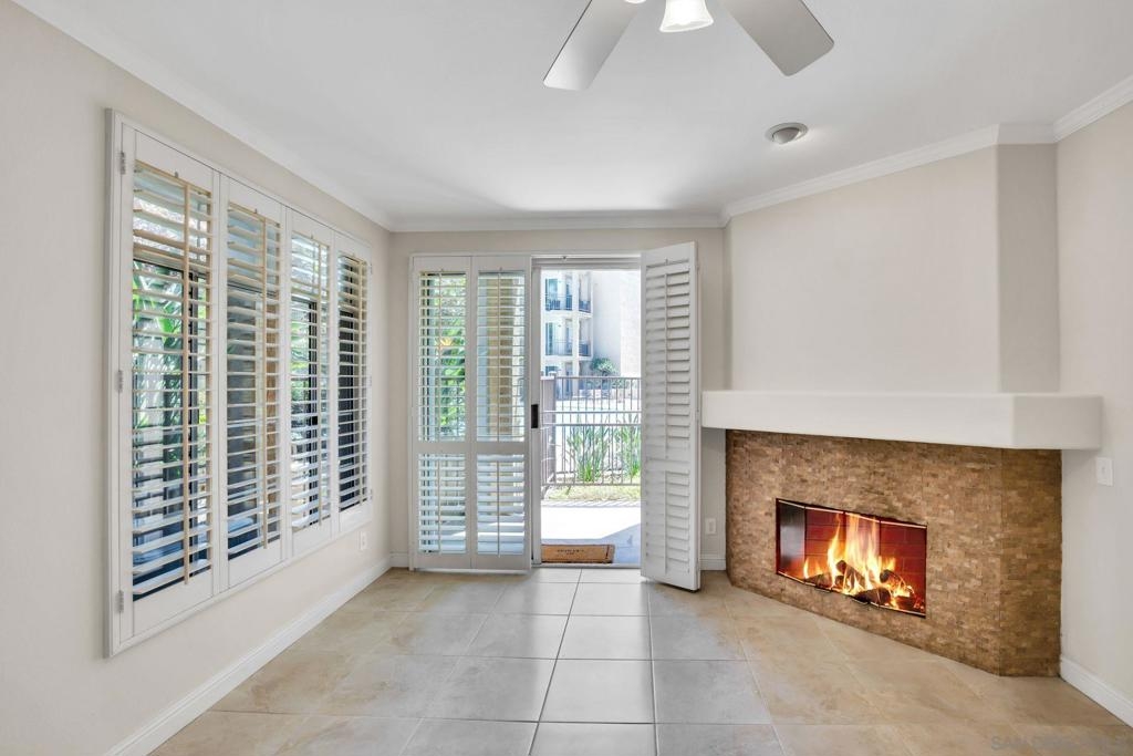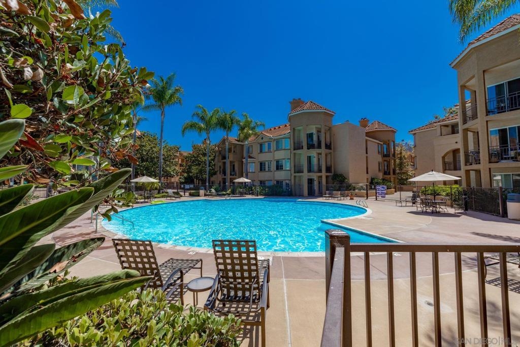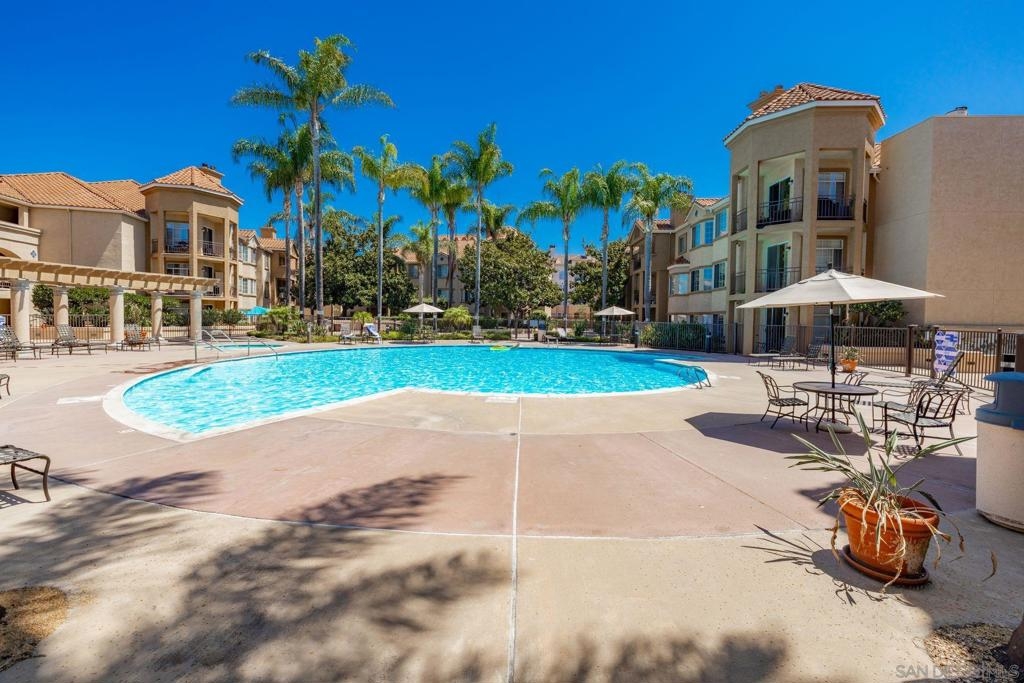 Beautiful 2 bedroom, 2 bathroom, lower level, single story condo with pool views in the River Scene Community of Mission Valley in San Diego! Enjoy a spacious, open floor plan with an inviting fireplace, shutters, and a gourmet kitchen. The kitchen offers stainless steel appliances, a breakfast bar, stylish white cabinetry, and elegant lighting. The bedrooms feature large closets, a dual vanity in the primary bathroom, and a shower-in-tub. Sliding doors lead to the outdoor patio. Additional property features include ceiling fans, an in-unit, stackable laundry closet, and underground, secure, gated parking. Community amenities include a gorgeous swimming pool, spa, outdoor barbecue area, and guest parking. Convenient to nearby schools, walking trails, and easy access to major freeways! Equipment: Range/Oven Topography: LL