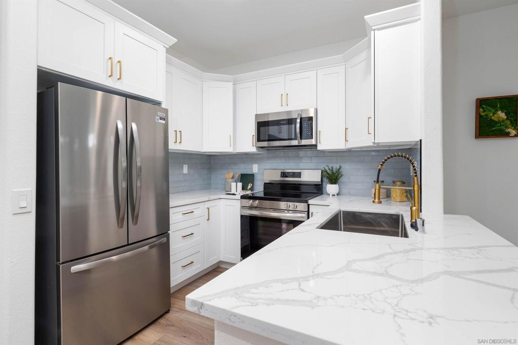 Centrally located turnkey remodel in Mission Valley. This 2 bed 2 bath end unit has large bedrooms, ample living space highlighted by an inviting fireplace in the living area and a wrap around patio that is perfect for outdoor entertaining. The kitchen has been completely remodeled with new appliances, cabinets, quartz counters and a wine cooler. Walking distance to numerous dining and shopping options as well as quick freeway access make this unit a practical option for young professionals or empty-netters wanting a walk friendly lifestyle. The building also offers a full fitness center, swimming pool and spa.