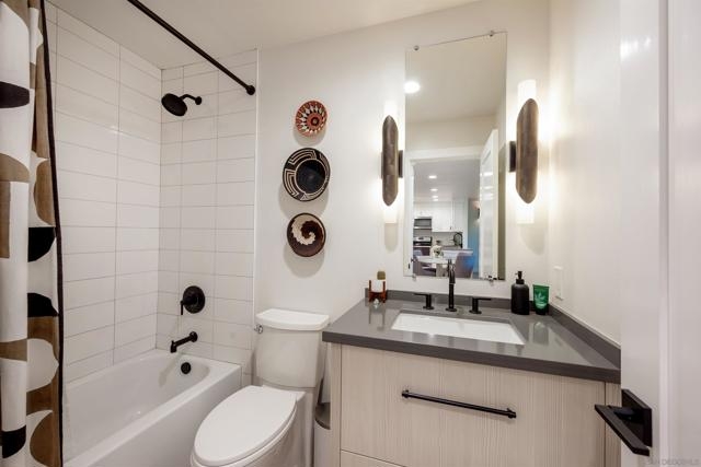 Mint condition and very stylish complete remodel on top floor, north facing over looking the river. Master bedroom with vaulted ceilings, Dual-wing bedroom layout for privacy. Underground, gated, garaged parking. Upgrades include all new windows and sliding door, bathrooms, kitchen, flooring, built in cabinets, custom closet organizers in both rooms, recessed lighting, ceiling fans and much more. full size Washer & Dryer, FHA/VA approved! Tandem parking space is the first space directly next to the elevator closest to the garage entrance. There are also ample parking spaces designated/marked for guests. Resort style living with a large pool and fitness room. Back gate allows easy access to the San Diego River trail which will lead you all the way to the beach. Sewer: Sewer Connected Topography: LL