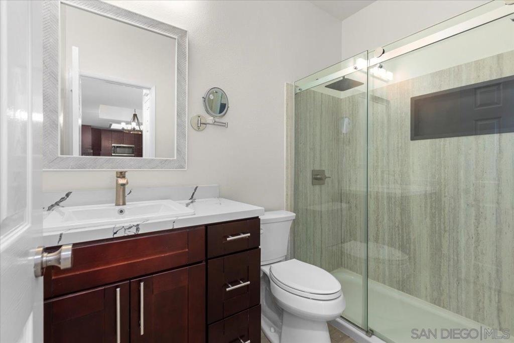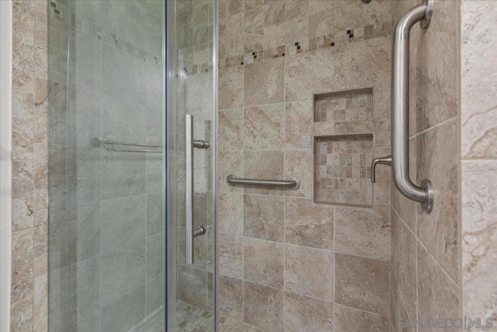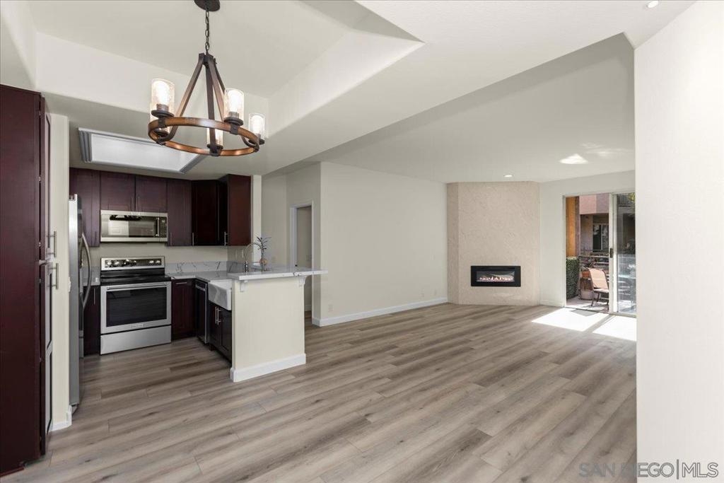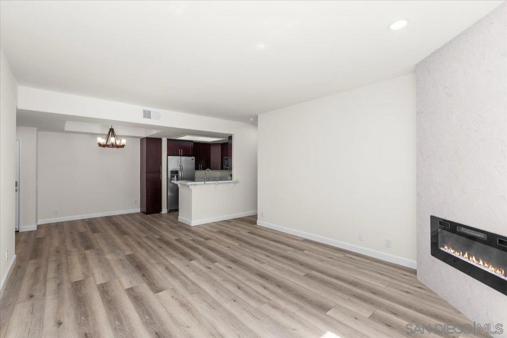 Experience modern luxury in this spacious, fully remodeled 2-bedroom, 2-bathroom condo, perfectly situated in the highly desirable River Scene complex. Tucked away on the second floor for added privacy, this home offers picturesque views of magnolia trees, palm trees, and the beautifully maintained pool area off the balcony. Upon entry, the open-concept living space welcomes you with contemporary elegance and high-end finishes. The stunning floor-to-ceiling quartz fireplace serves as a focal point, complementing the sleek quartz countertops and state-of-the-art stainless steel appliances in the kitchen. With brand-new flooring, fresh paint, and completely renovated bathrooms, in-unit fulll-size laundry, every detail has been carefully curated for a modern and sophisticated living experience. Residents of River Scene enjoy exceptional amenities, including a resort-style pool, a well-equipped fitness center, and water utilities covered by the HOA. Conveniently located near SDSU, USD, major freeways, and an abundance of shopping and dining options, this home is just minutes from Downtown San Diego and the SAN Airport. Completely move-in ready, this exceptional condo presents a rare opportunity for refined riverfront living. This home is in the census tract that qualifies for the Home Advantage program. A key advantage of Home Advantage is a 3% down payment and no mortgage insurance! Ask me for more details.
