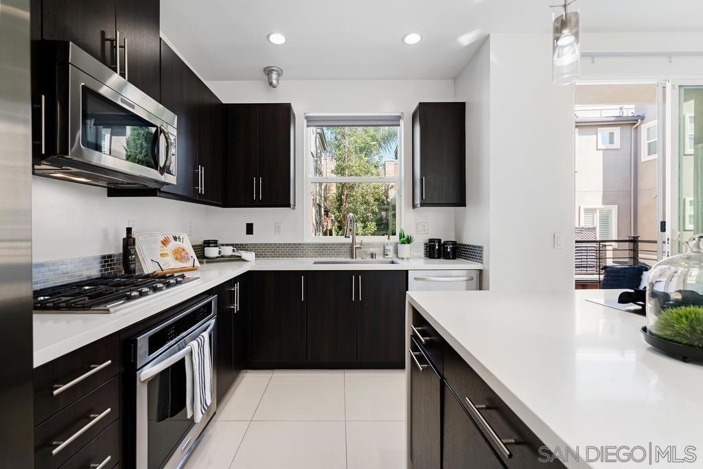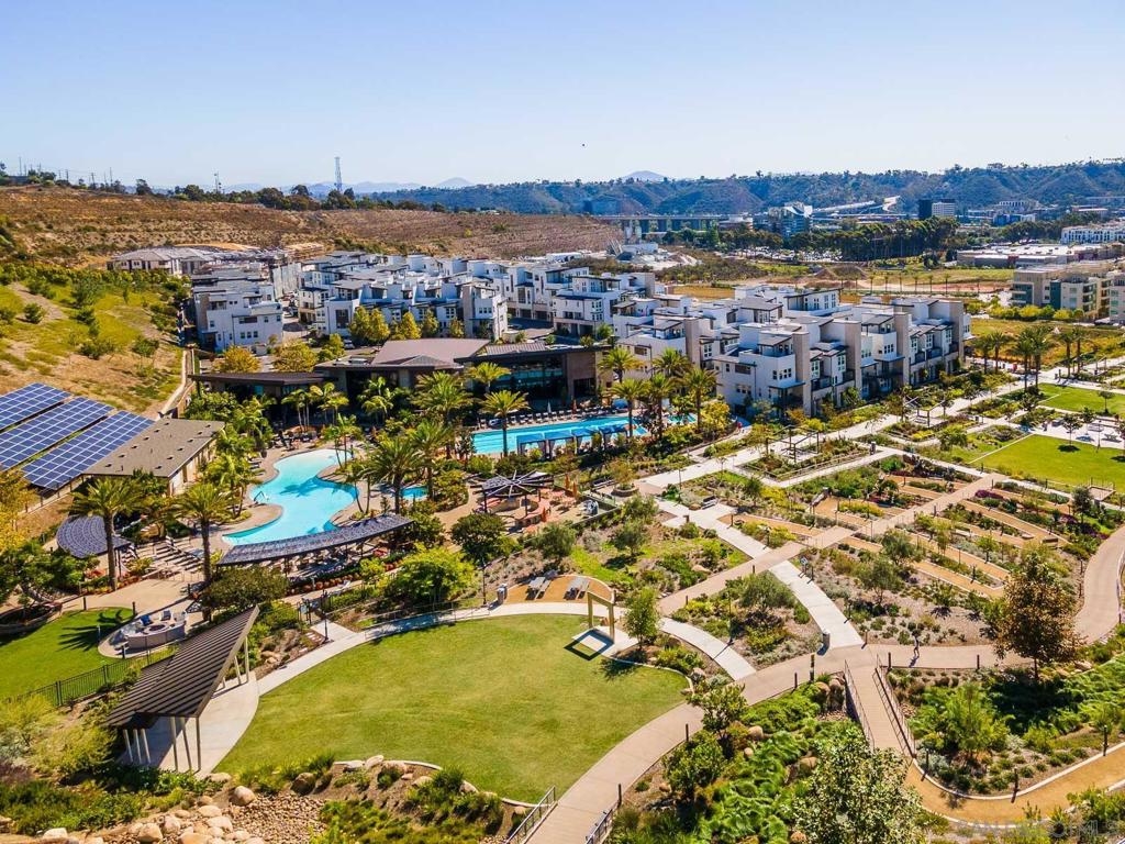 Welcome to sophisticated urban living with a modern flare in this ORIGEN/Skyloft townhome (Plan 3), located in the master planned community of Civita in Mission Valley. This 3-story, 2-bed/2.5 bath end unit has a spacious, open floor plan with high ceilings and an abundance of natural light from expansive south-facing windows. Tastefully upgraded, features include European-style cabinetry, quartz countertops, large kitchen island, modern fixtures, SS appliances, pendant, and recessed lighting. Enjoy two balconies located on the second floor; one that includes a gas stub for a BBQ. The master suite is located on the top floor including a separate sitting area with wall-to-wall cabinetry...see supplement below... Make this your private sanctuary or home office. The bathroom suite features dual vessel sinks, a large shower including an overhead rain shower head, and a walk-in closet. Want privacy? The second bedroom, located on the first level offers its own shaded patio and bathroom along with a closet that wraps around under the staircase for extra storage. This townhome has an attached two-car garage with a frosted contemporary garage door. Enjoy the private spa-like retreat located within the Origen complex. Complete with a saltwater pool, spa, and lounge-style relaxation deck. In addition to this, the Civita community offers a full recreation center with an Olympic-size lap pool, a recreational pool & spa, state of the art gym along with a gorgeous club house and is located in the heart of Mission Valley. Origen was the first residential neighborhood at Civita, with a modern/urban feel. There is lush landscaping with a pool/spa for the residents. The full recreation center is located down the street and features a clubhouse, gym, an Olympic-size lap pool, recreation pool, spas, cabanas, BBQs, a beautiful park, amphitheater, dog park, community garden and walking paths. A new elementary school is being built down the street and is expected to be open by Fall 2022. Complex Features: ,,,,,, Equipment: Dryer,Fire Sprinklers,Garage Door Opener, Range/Oven, Washer Other Fees Type: , Sewer: Sewer Connected Topography: LL