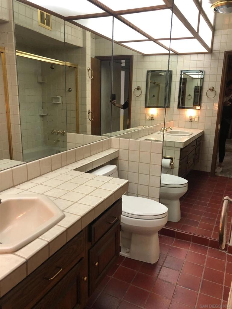 EXTRA LARGE one bedroom, second floor/CORNER unit condo located in WEST Mission Valley at The Bluffs. This RARE model has TWO Parking spaces, a gas FIREPLACE and TWO spacious living areas--one combo living/dining area with a wet bar as well as a separate family room with a sliding glass door that leads to a private balcony. Large walk-in closet and lots of additional storge throughout. Kitchen features newer appliances. This fixer property needs plumbing/elecrical work, paint and flooring. Gated community has sparkling pools, a club house, tennis courts, gym, BBQs, community laundry facitlities and is located near public transportation, freeways, shopping, eateries, USD and the beaches! Complex Features: ,,,,,,,, Sewer: Sewer Connected Topography: LL