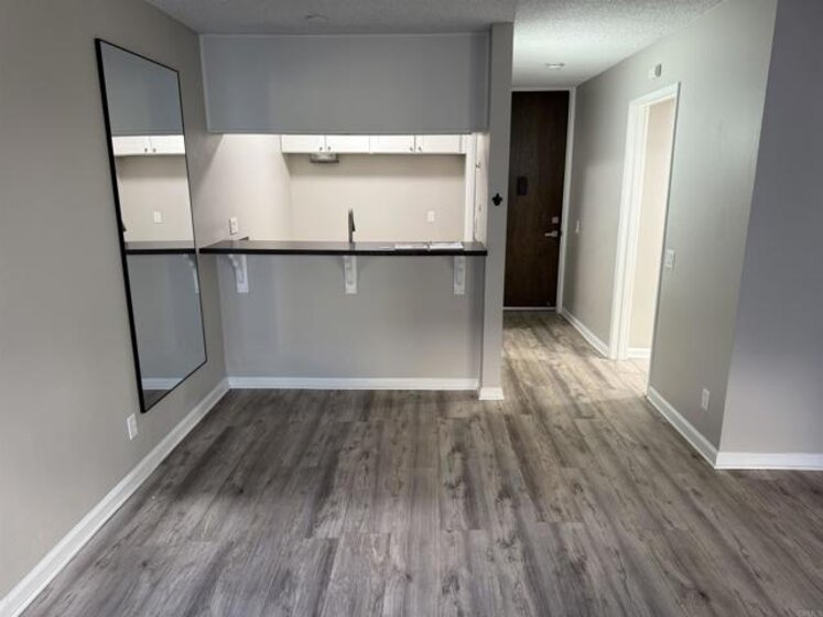 Discover modern elegance in this beautifully remodeled top-floor studio condo at 6202 Friars Rd, San Diego, CA 92108. Nestled in the heart of vibrant Fashion Valley, this open-concept gem boasts a fresh, contemporary design with premium upgrades throughout. Step inside to find sleek white shaker cabinets paired with sparkling quartz countertops in the kitchen, creating a bright and inviting space. The bathroom shines with a quartz-topped vanity and a recently refinished tub/shower combo. Recently painted walls and stylish new luxury vinyl plank flooring elevate the aesthetic, while a brand-new AC and heating unit ensure year-round comfort. Thoughtful details include mirrored closet doors and built-in closet drawers for ample storage. Enjoy the convenience of on-site laundry facilities and the security of an assigned parking spot in the gated garage. The Bluffs community offers an exceptional lifestyle with resort-style amenities: take a dip in the sparkling pools, unwind in the spa or sauna, stay active in the fitness center, or enjoy a match on the tennis courts. Host gatherings at the BBQ patio or relax in the clubhouse. Plus, benefit from included utilities like water, sewer, and basic cable! Perfectly located, this condo puts you minutes from San Diego’s best dining, shopping, and entertainment in Fashion Valley and beyond. Enjoy the coastal lifestyle with Mission Bay, SeaWorld, and San Diego’s pristine beaches just a short drive, offering endless opportunities for outdoor adventures and relaxation. Don’t miss your chance to own this move-in-ready studio that blends modern luxury with unbeatable convenience!