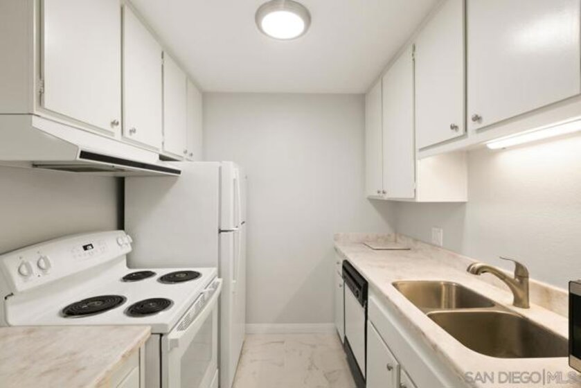 Spacious open floor plan w/ extra large patio at the west end of Fashion Valley, near the 5 and Mission Bay. Beautifully upgraded/remodeled, Condo, Kitchen & Bath. The condo is located in the back, on the quiet side of the complex, overlooking the pool and green space. Plenty of storage with large hall closet and master bedroom walk-in closet. The Bluffs is a resort-style complex with sparkling pools, spa, clubhouse, tennis courts, BBQs. Equipment: Range/Oven Sewer: Sewer Connected Topography: GSL