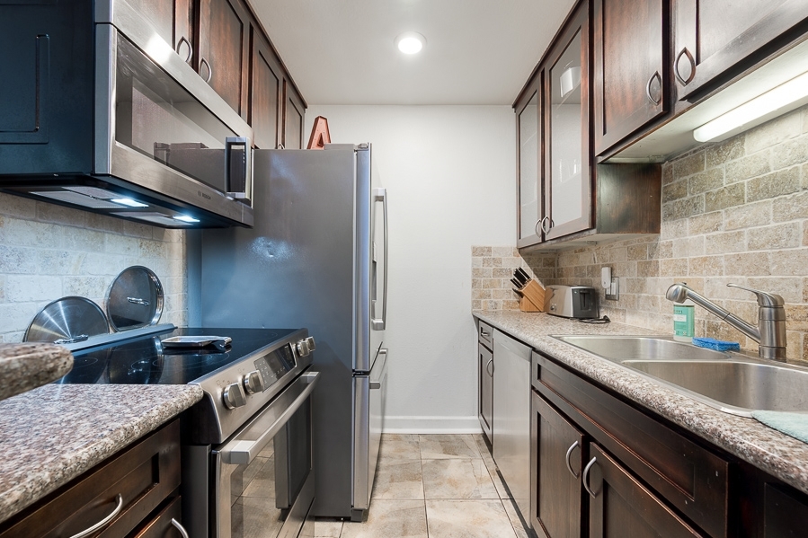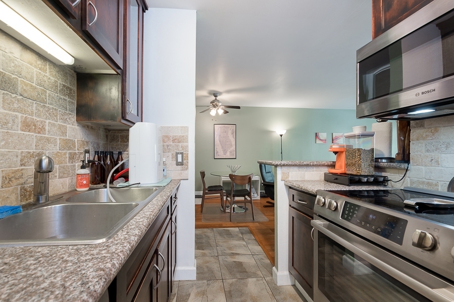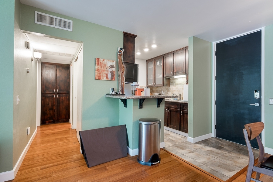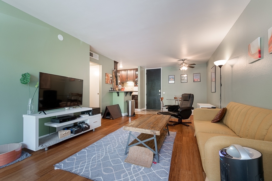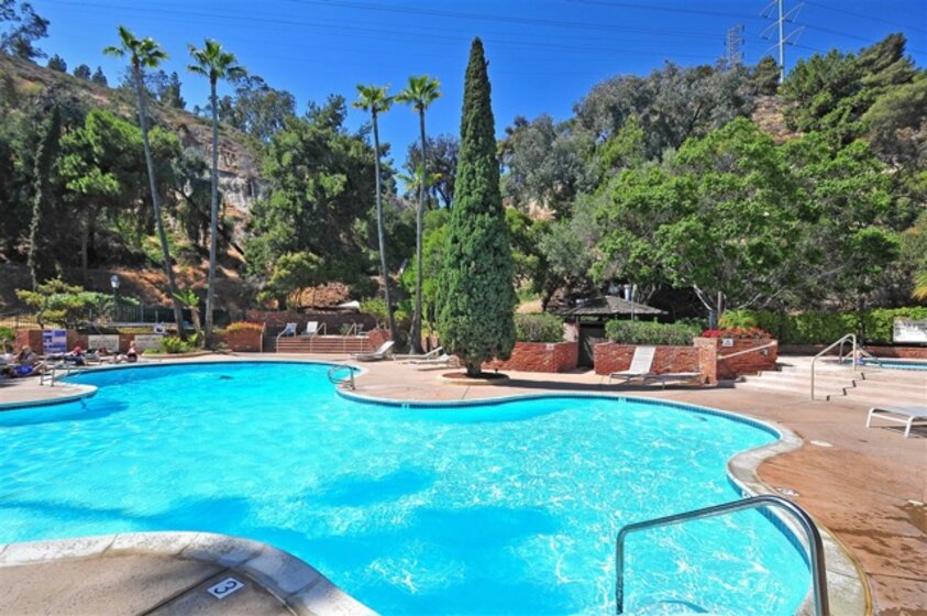 Beautiful 1 bedroom 1 bath condo located in the highly desirable Mission Valley complex known as The Bluffs. This first floor quiet unit has been highly upgraded with bamboo flooring, stainless steel Bosch appliances, remodeled kitchen with granite counter tops, tiled back splash, remodeled bathroom, nest thermostat and much more. Complex features two pools, clubhouse, tennis court, BBQ area, waterfalls throughout and secure underground parking. Close to shops, restaurants and freeways.. Neighborhoods: Fashion Valley Equipment: Range/Oven Other Fees: 0 Sewer: Sewer Connected Topography: LL