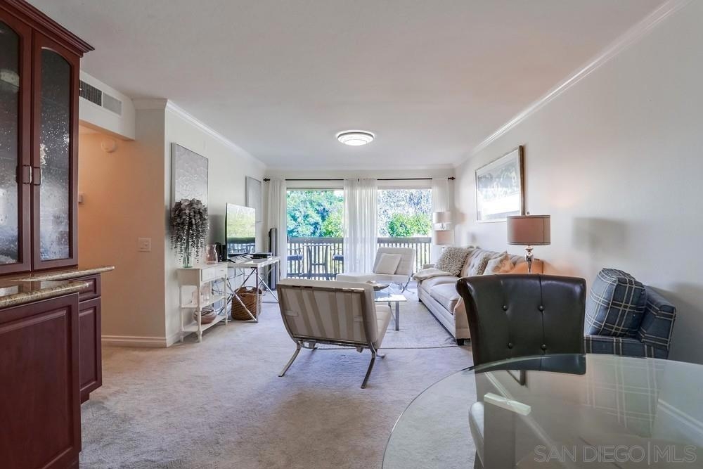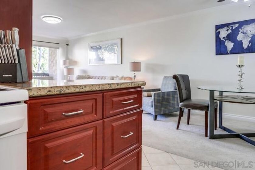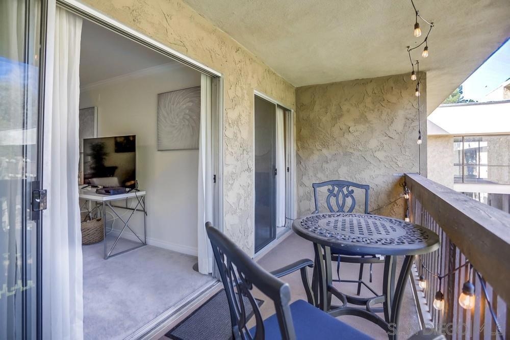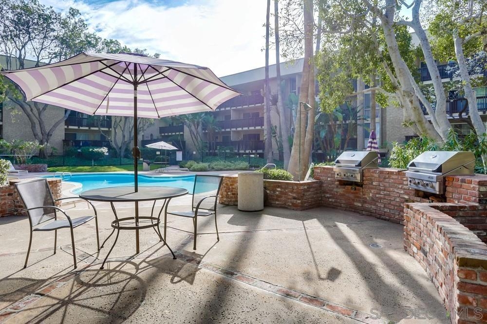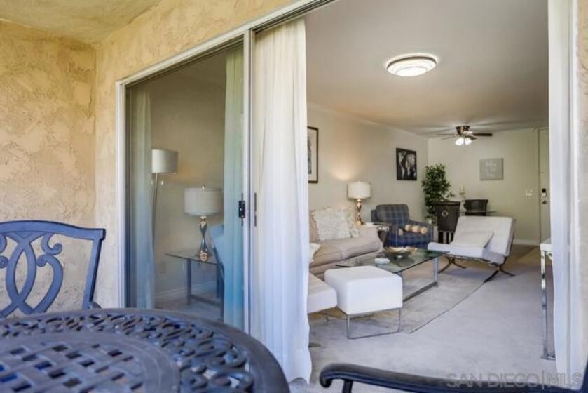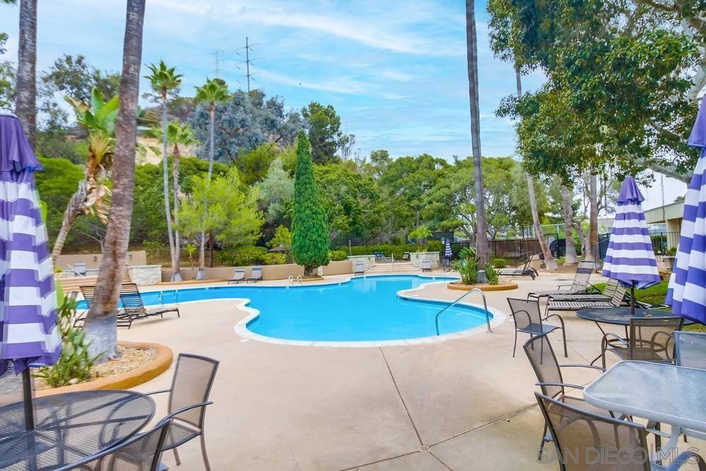 Amazing opportunity to own this rare top floor unit in a quiet location of The Bluffs at Fashion Valley, with stunning views of the pool, bluffs and trees. This condo has a great open floor plan featuring several upgrades including custom kitchen cabinets, beautiful granite countertops, LG appliances, upgraded bathroom, central AC/heating system, textured ceiling, crown molding throughout and an extra large balcony with beautiful views in a quiet location of the complex. The Bluffs is a resort style complex w/ beautiful amenities... Experience luxury living in this exclusive top-floor unit at The Bluffs, a resort-style complex. Immerse yourself in the elegance of this meticulously upgraded one-bedroom, one-bathroom condo featuring a bespoke kitchen with granite countertops and a stylish backsplash. The hallway boasts a custom office space, while the newer bathroom adds a touch of modern sophistication. Crown molding adorns every corner, enhancing the overall aesthetic, and the convenience of central AC/Heating ensures year-round comfort. Step onto the large balcony to enjoy panoramic views of the pool and greenbelt, creating a serene atmosphere for relaxation. Ideally located close to Fashion Valley Mall, YMCA, trolley stations, minutes to Downtown San Diego, Hillcrest, Balboa Park, bay, Sea World, San Diego International Airport and surrounded by major freeways I5, I8, 805 and 163. HOA has one of the best values which includes basic cable TV, water, trash pick up and much more. This unit has a high quality upgraded kitchen, bathroom with custom cabinetry and an office space with nice built-ins. This could be a great place to call home or the ideal investment property for great rental income. Location, location, location!