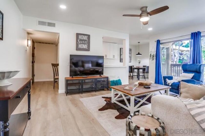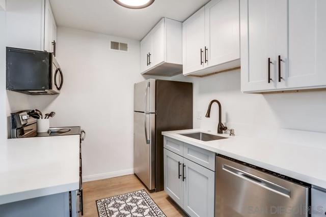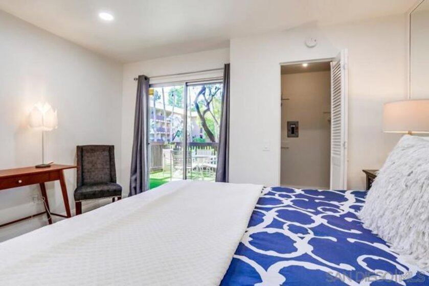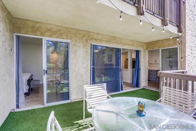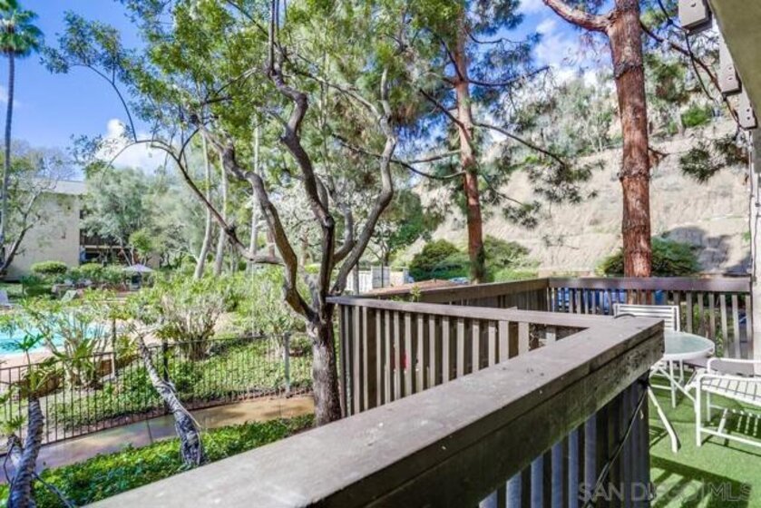 Desirable first floor end unit with the largest balcony in the Bluffs at Fashion Valley condominium. This condo has one of the best quiet locations overlooking sparkling pool, bluffs and palm trees. This unit has been recently highly upgraded. Great & open floor plan w/ a designated dining area separate from the living room, facing the kitchen w/ a sliding glass door leading to the huge balcony. This light & bright unit comes w/ central AC/Heating. The Bluffs is a resort style complex w/ sparkling pools, SPA, club house, tennis courts, BBQs , gym and many acres of gorgeous landscaped areas.