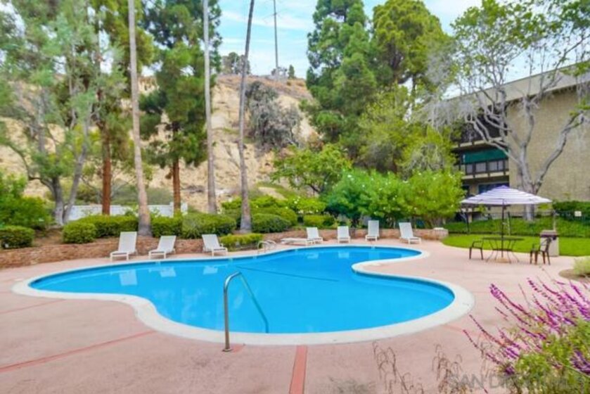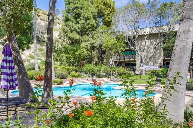 Amazing opportunity to own this rare 2 bedroom, 2 bath top floor unit in a quiet location of The Bluffs at Fashion Valley, with beautiful views of the pool, trees and bluffs. This turnkey property has a great open floor plan with bedrooms located at opposite ends offering lots of privacy. This property offer nice upgrades and special features such as central AC/heating, lots of closets including walk-in closets in both bedrooms. The Bluffs at Fashion Valley has a premium central location close to the beaches & all major attractions San Diego has to offer. The Bluffs at Fashion Valley is ideally located close to Fashion Valley Mall, YMCA, trolley stations, minutes to Downtown San Diego, Hillcrest, Balboa Park, bay, Sea World, San Diego International Airport and surrounded by major freeways I5, I8, 805 and 163. HOA has one of the best values which includes basic cable TV, water, trash pick up and much more. The Bluffs is a resort type complex with amazing amenities which include 2 beautiful pools surrounded by nature, lush landscaping with palm trees, SPA, tennis courts, club house, gym, game room, meeting room and BBQs with low HOA which includes water, trash pick-up and basic cable TV. Unit has 2 parking spaces assigned.