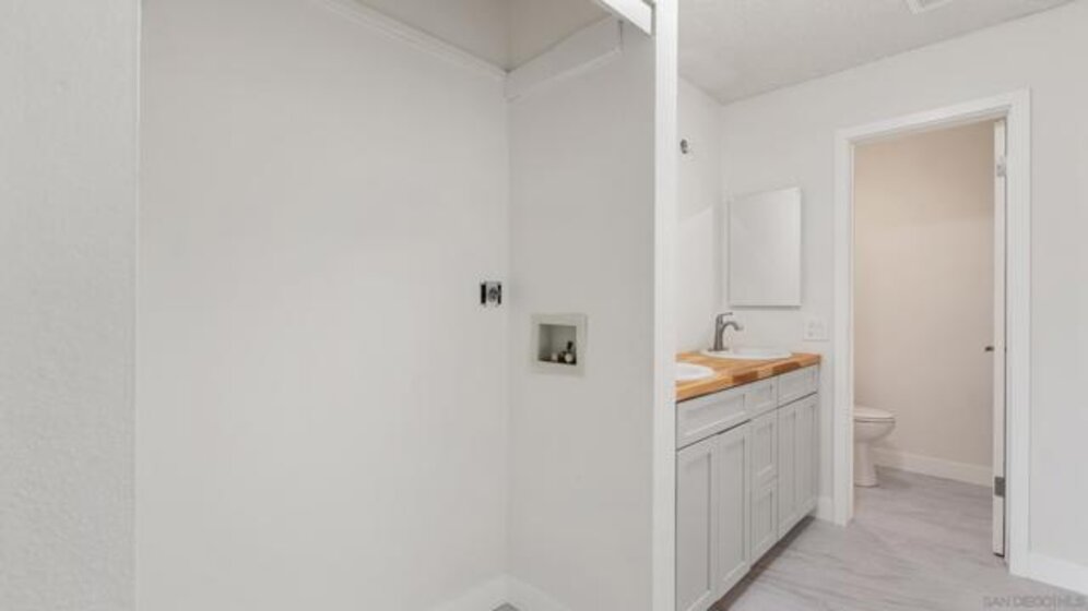 Centrally located renovated bottom floor south facing condo located on the exterior edge of the complex with direct access from Friars Road. Kitchen now boasts the following newly installed items: soft touch cabinets & drawers (Harbor Grey), Butcher Block counter top, sink & garbage disposal. New electrical outlets throughout with GFCI’s installed in the kitchen & bathrooms. Kitchen & bedrooms painted in Swiss Coffee & coated with the Egg Shell semi-gloss. Baseboards (new), door jams & doors painted in Pure White & coated with the Egg Shell semi-gloss. Entire ceiling newly painted. Brand new carpet & door handles throughout. New light fixtures in the dining room (to include new ceiling fan), hallway &primary bathroom hallway. Tile floor in the primary bathroom is newly installed. Dual pane windows & sliding glass door provide enhanced tranquility as well as facilitates easy entry into the unit for visitors from Friars. Three newly installed smoke detectors. New cabinets, two vanity sinks & medicine cabinets, overhead fans, toilet, fiber glass shower / trim with two sliding glass bypass doors newly installed in the primary bathroom. Newly installed shower cutoff valve (not visible) which allows for unimpeded repairs &/or changes. Second bathroom boasts newly installed toilet, fixtures, medicine cabinets, shower faucets & trim. Exceedingly close proximity to major freeway access, two shopping malls, restaurants, the Y, University of San Diego, Sea World, Mission Bay & the beaches. Come see for yourself what this dwelling has to offer! Substantial closet & storage space throughout. In unit laundry hookups have been installed (no exhaust outlet) with utilization subject to HOA approval. Community laundry room located at end of main hallway. HOA pays for basic cable & the service provider is Spectrum.