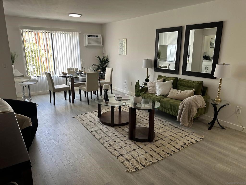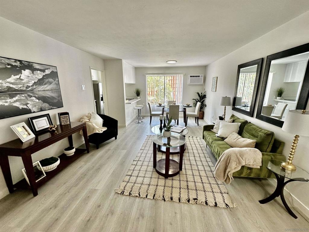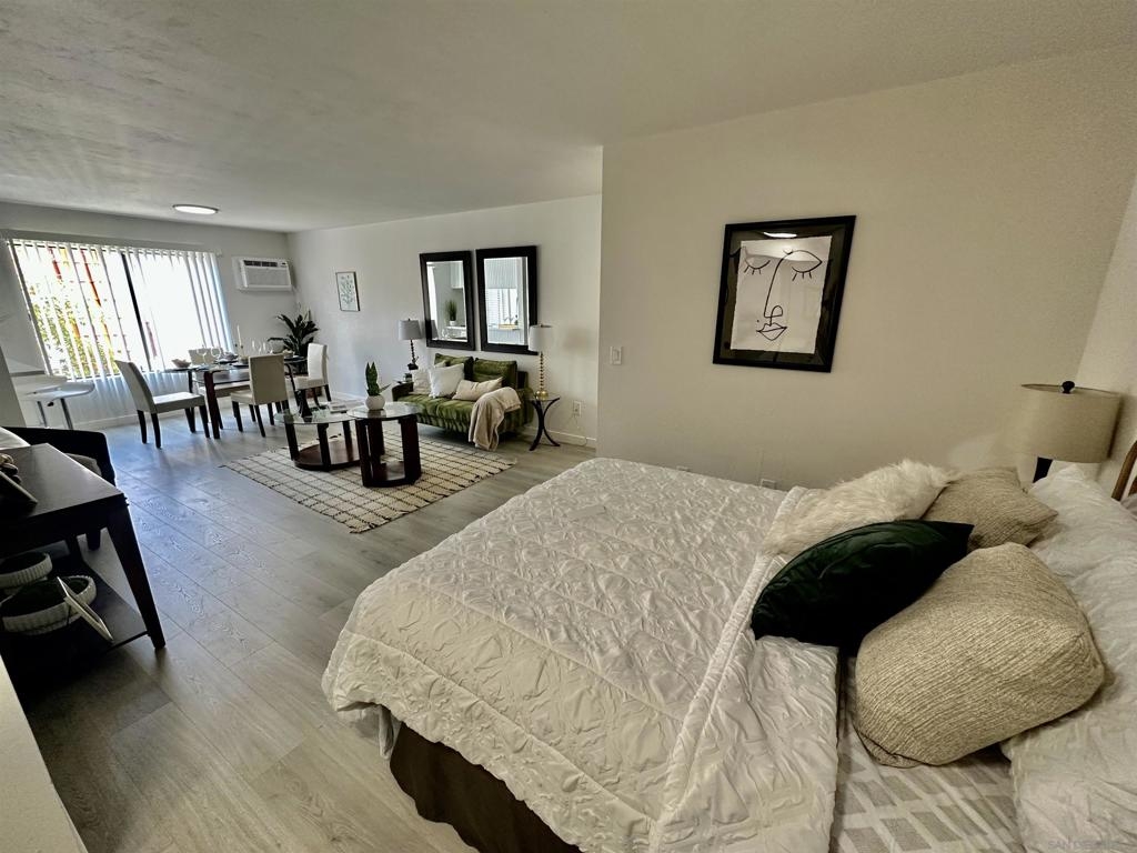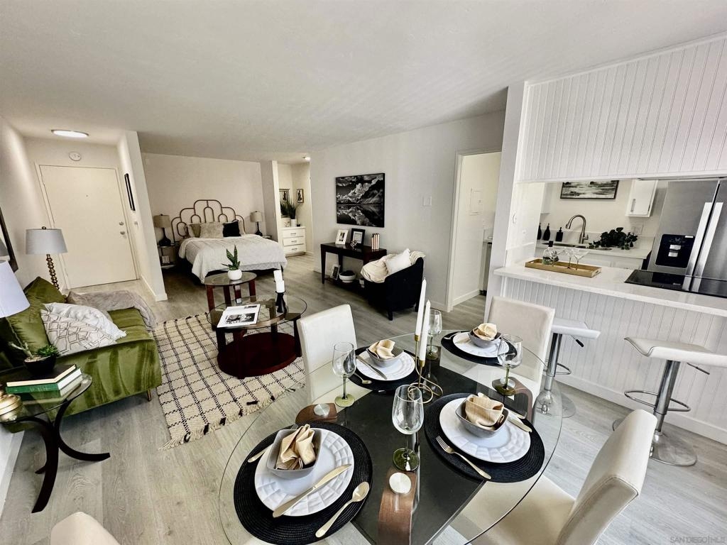 Beautifully remodeled studio in the Franciscan! This move in ready interior unit is extremely quiet and shares only 1 wall. Lots to love about this home as it boasts new flooring, appliances, quartz counters, tile, paint and more! Incredible Mission Valley location, near Fashion Valley mall, restaurants, trolley, etc.... Very popular gated association that includes a pool, spa, gym, sauna, and BBQ's!