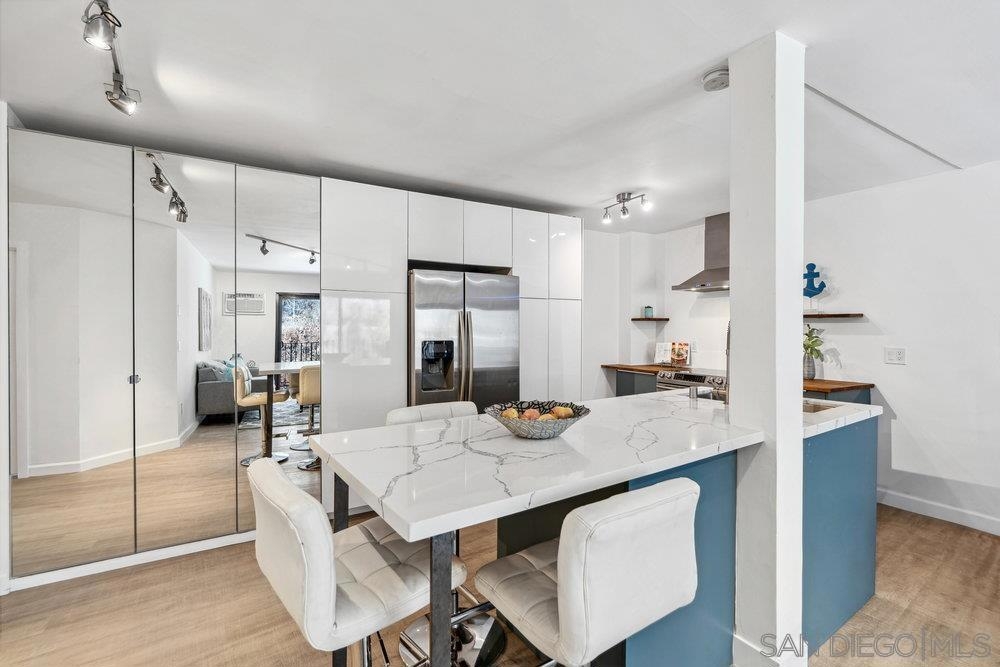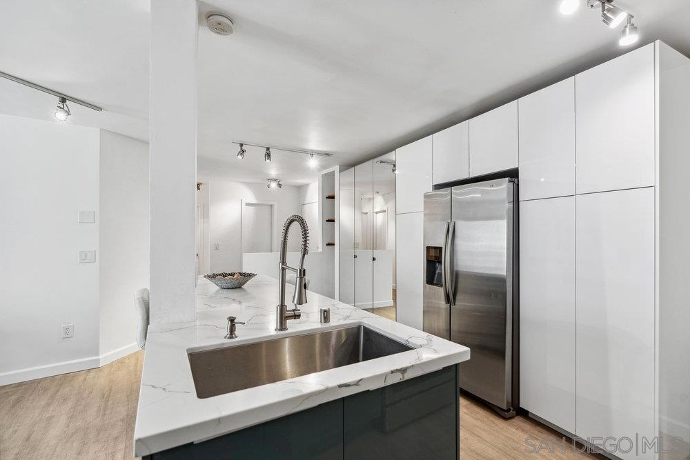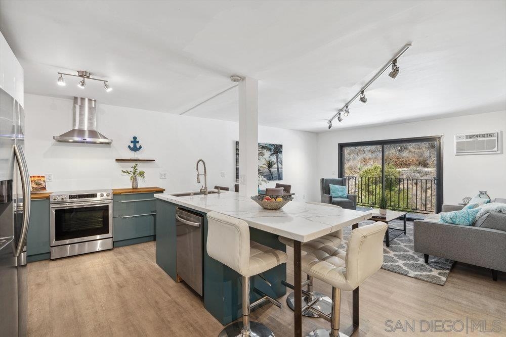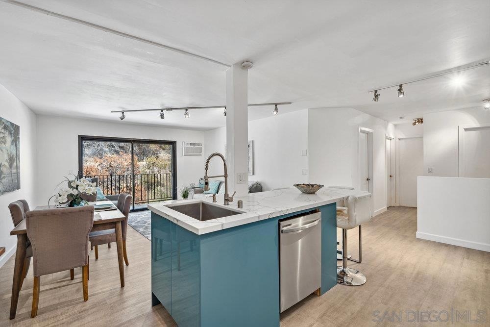 Top floor unit! HOA includes cable TV, wifi, trash, and water. Beautifully remodeled contemporary condo. Offering a peaceful canyon view from the balcony, an open floor plan, luxurious finishes, and inviting kitchen with stone breakfast bar. This residence is in an ideal location with 2 gated parking spaces. Whether you're looking for a serene retreat or a stylish space to entertain, this home delivers the best of both worlds. Premium features & upgrades include stainless steel appliances & quartz counter tops, elegant stone breakfast bar for dining & entertaining, open floor plan with seamless indoor-outdoor flow, modern bathrooms with designer finishes and recessed lighting & updated flooring throughout.