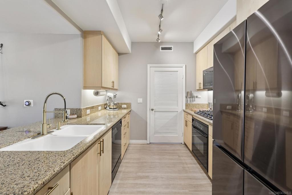 Beautiful move-in ready 2-bedroom, 2-bath condo at The Lido offers the perfect blend of comfort, style, and convenience. This home is west-facing and filled with natural light. Positioned on the first floor at the end of a quiet cul-de-sac, it provides rare privacy and convenience with no stairs, no elevator, and a private side entrance steps away for easy access. Inside, you’ll find an upgraded kitchen with granite countertops, stainless steel appliances, and plenty of storage, plus a full-size in-unit washer and dryer. Dual sliders in the living and dining areas create refreshing cross-breezes, while the private patio is perfect for morning coffee or evening relaxation to enjoy San Diego’s idyllic weather. The Lido is a gated, VA and FHA-approved community with resort-style amenities: two sparkling pools, 2 spas, fitness center, clubhouse, outdoor cooking stations, firepit lounge, and direct access to the scenic San Diego River trail. You’ll also enjoy two assigned spaces in the secure underground garage plus private storage. With Fashion Valley Mall, Trader Joe’s, two AMC theatres, trendy dining, the trolley, and major freeways just minutes away, don’t miss your chance to own one of Mission Valley’s best values! You won’t find another like it!