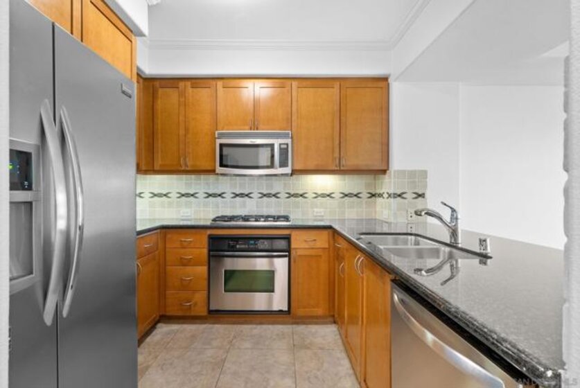 Updated River Facing 3rd Floor Unit! Welcome to The Lido, the premier community in the heart of Mission Valley! This stunning 2-bedroom condo offers a blend of modern luxury and comfortable living. All NEW Paint and Updated light fixtures throughout the condo add a contemporary touch. The kitchen is a chef's delight, featuring granite countertops, all stainless steel appliances, and a gas stovetop. The primary bedroom boasts a spacious walk-in closet and an additional large closet, providing ample storage. The private en-suite bathroom is designed for comfort and convenience, with dual sinks, a stand-up shower, and a separate tub. The second bedroom opens onto a large balcony that extends to the living room, offering a perfect spot to relax and enjoy the view of the community pool area. This river-facing unit also includes a washer and dryer in the hallway closet for added convenience. Living in The Lido means access to a variety of top-notch amenities. Enjoy the beautifully maintained community pools, BBQ areas, and a well-equipped fitness center. The community center, complete with pool tables and comfortable couches, offers a great space for socializing or unwinding. Experience the best of Mission Valley living at The Lido.