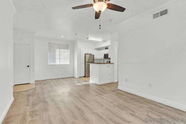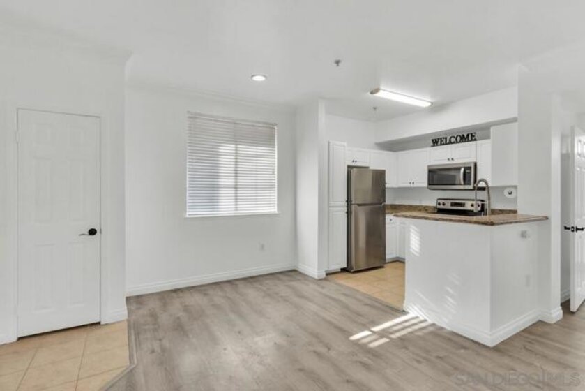 Welcome home to this delightful 1-bedroom, 1-bathroom condo, nestled in the heart of vibrant Mission Valley. Features include a spacious living room - dining room combo with granite counters and new stainless steel appliances, in unit laundry, large patio, brand new floors, a fresh coat of paint and central AC. Located in the hub of Mission Valley, just moments away from local shops, dining experiences, parks, and entertainment options. This complex is also dog friendly. The Missions at Rio Vista offers wonderful amenities including two large pools, two jacuzzi areas, club house, shuffleboard, BBQ, billiards table, newly renovated Gym open 24 hours and conference rooms. All this for very low HOA fees. With the recent upgrades and endless list of amenities this is a true gem. Act now before it's gone!