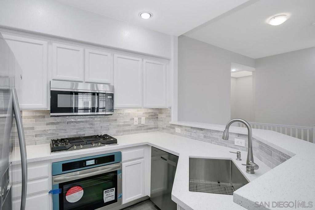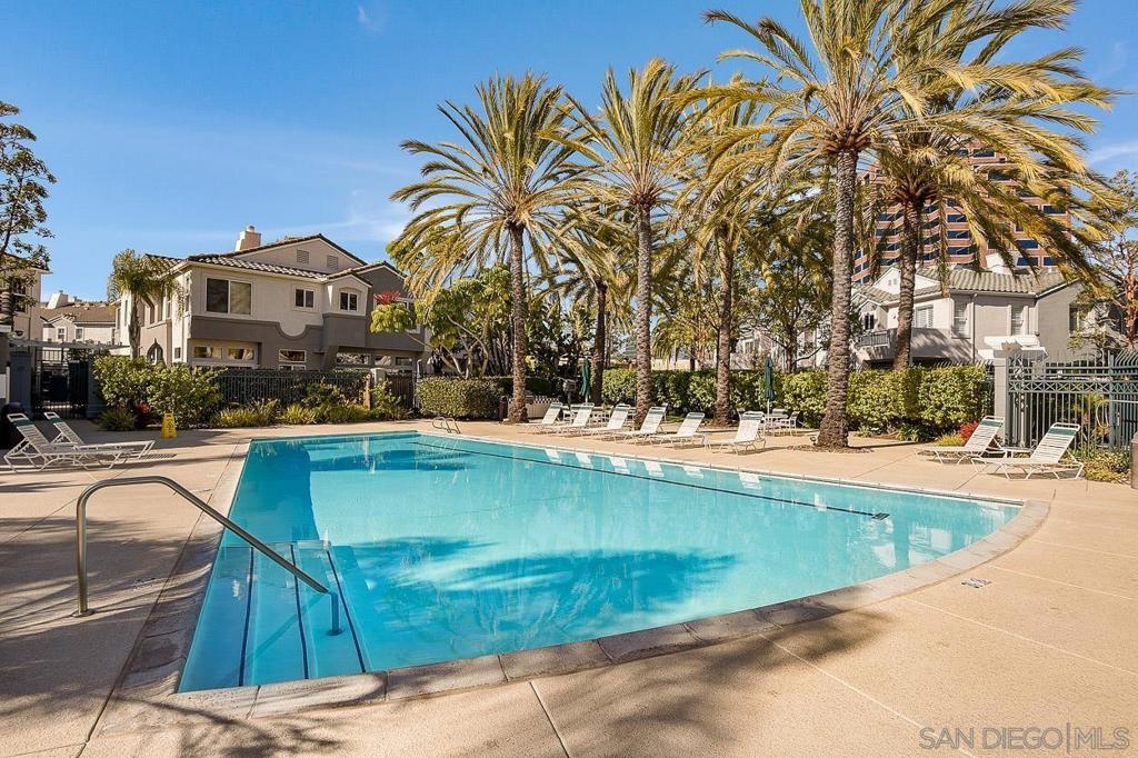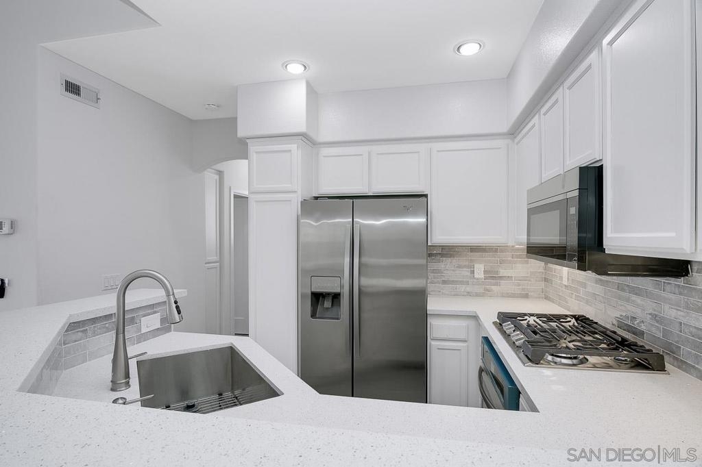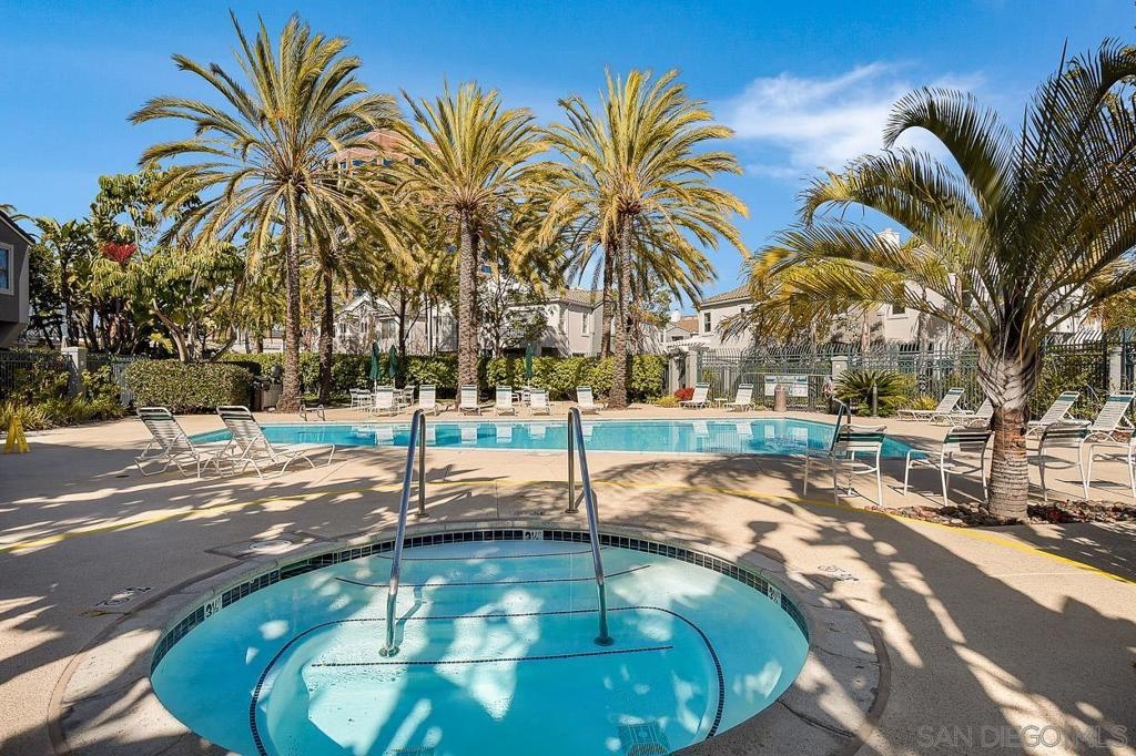 Newly remodeled light and bright townhome at Union Square in Hazard Center. Fully gated community includes pool, spa, and gas grilling as well as direct access to San Diego River trails. Remodel includes brand new finishes throughout: new flooring, kitchen and bath countertops, new showers and baths, new kitchen appliances and a private one car garage with laundry in unit. Walking distance to Hazard Center shopping and dining.