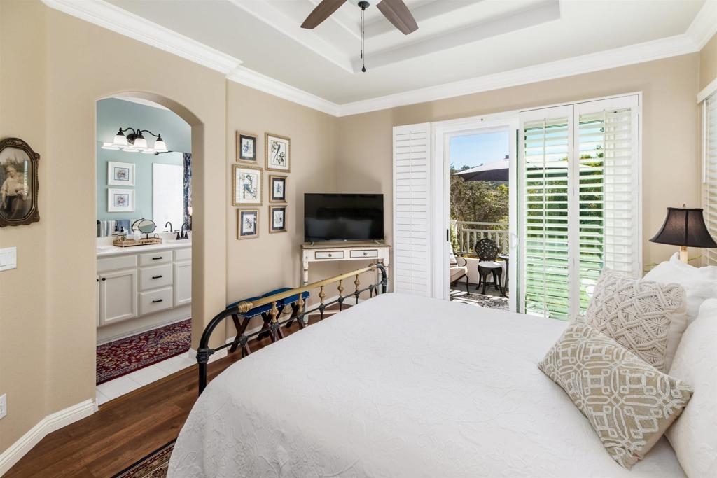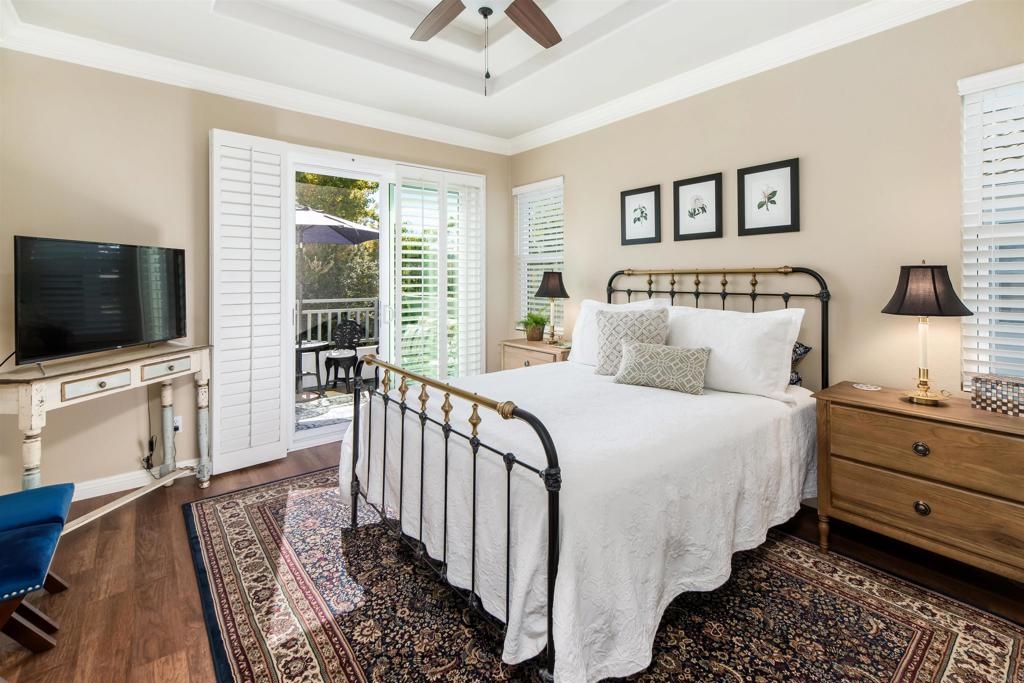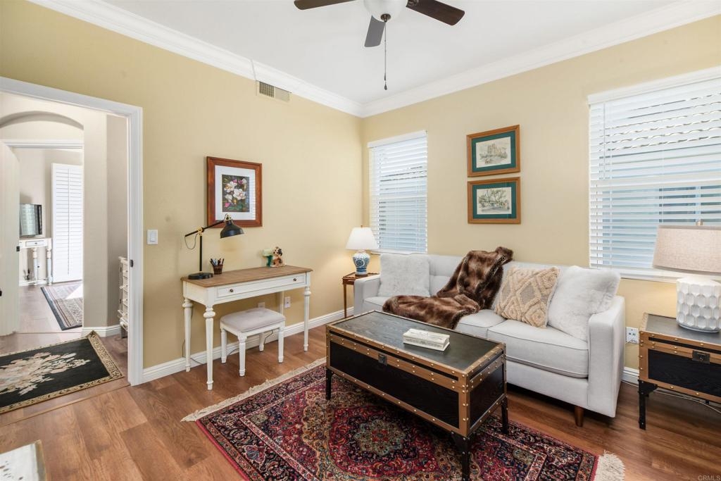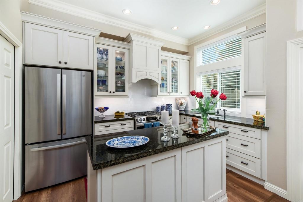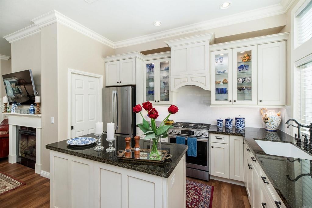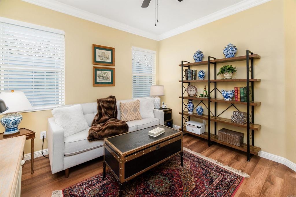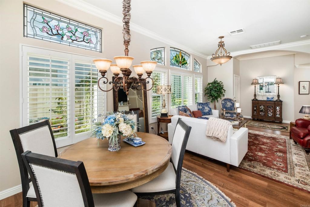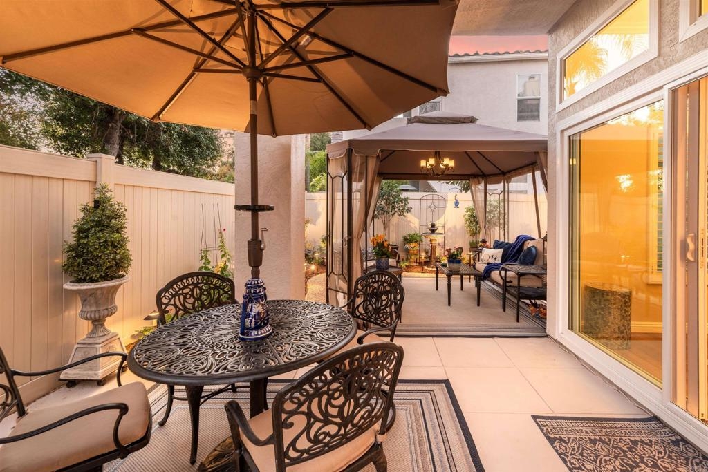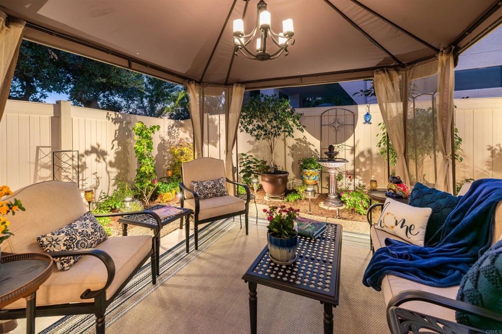 Rarely available South facing end unit overlooking the San Diego River! Peacefully situated in the gated community of Union Square in the heart of Mission Valley, this immaculate townhome offers privacy & comfortable sophistication w/ its refined open interior, contemporary design elements & the only Model 2 unit in the complex w/ private view balcony off the primary suite. Quintessential location: Steps to Hazard Center & shopping centers w/ a conveniently located Trolley stop & easy freeway access to the beaches, downtown, & airport all while maintaining privacy & exclusivity. Once inside, crown molding, luxury vinyl floors & new windows throughout work to create a captivating interior offering a spacious high-end feel. Bathed in natural light & accented w/ high ceilings, beautiful stained glass windows & an elegant electric fireplace, the spacious living room & adjacent dining room offers a perfect balance for casual lounging or hosting elevated gatherings alike while sliding glass doors work to unite the interior to the private outdoor patio. Remodeled kitchen equipped w/ granite counters, white shaker style cabinetry, instant hot water faucet, island & walk-in pantry. Mainl-level half BA. Continue upstairs w/ gorgeous wainscoting. Affording the timeless charm of sunset views, the primary suite features a large balcony, tray ceilings, plantation shutters, California closets and folding closet door to maximize space. Spa quality BA w/ dual sinks & walk-in shower. Secondary BR w/ crown molding & upgraded ensuite BA. Both BRs feature new ceiling fans. Attached 1 car garage w/ resurfaced floors. 1 assigned parking space. Backyard offers a perfect balance of beauty & function w/ irrigation system, dusk to dawn LED lighting & pergola. Welcome home!