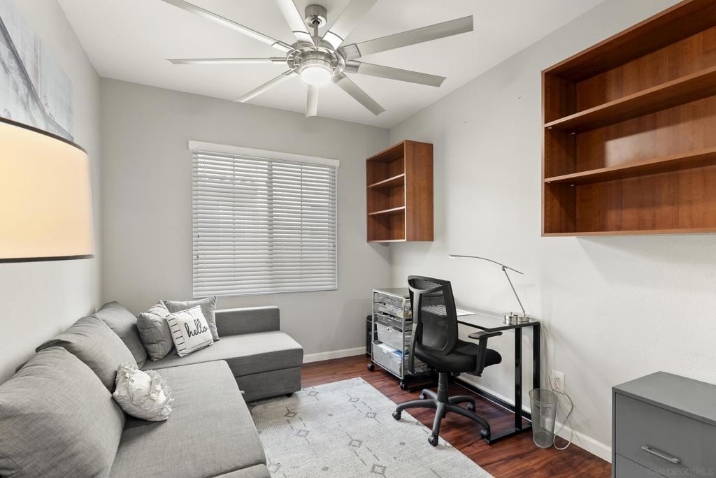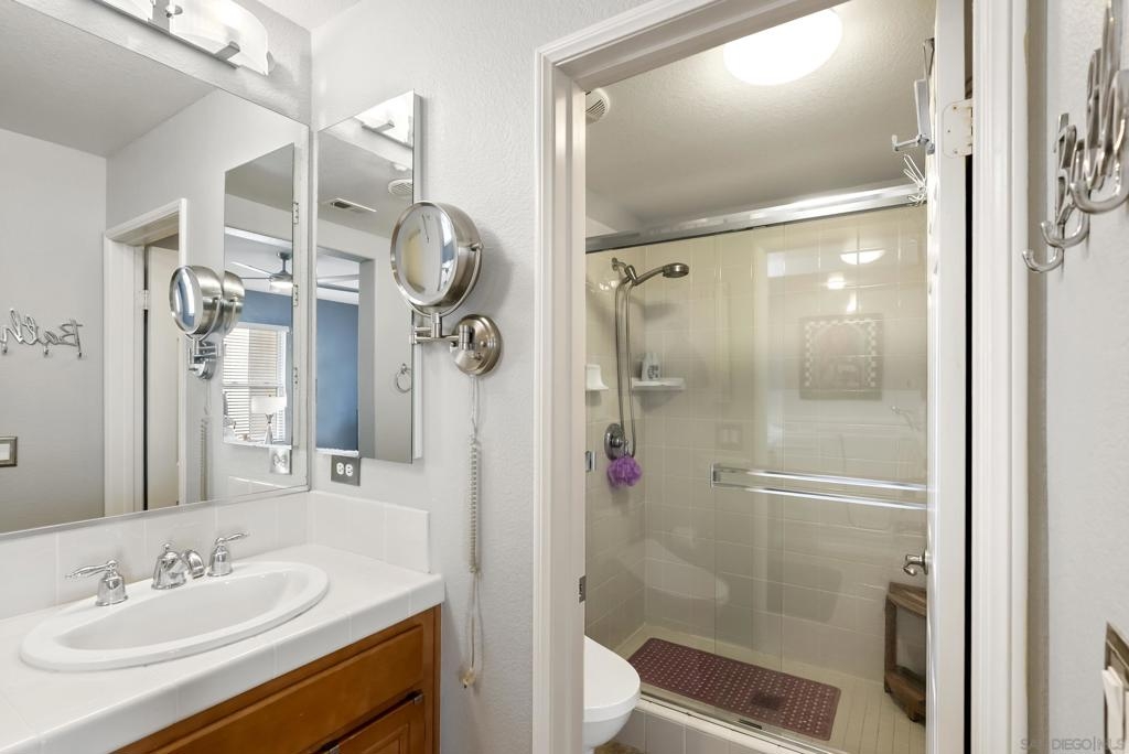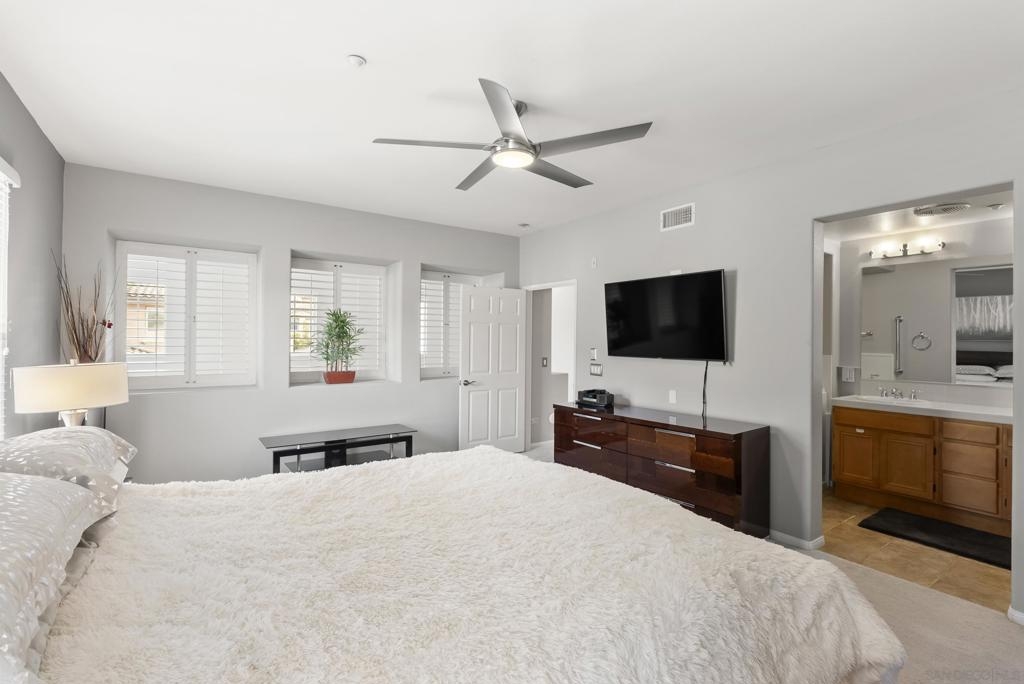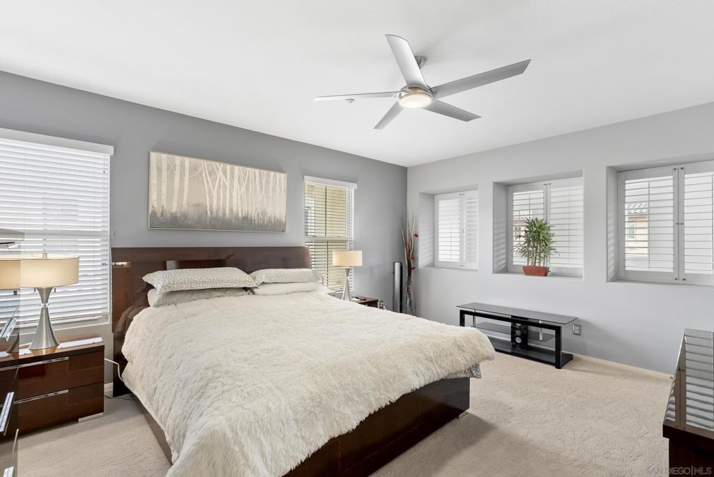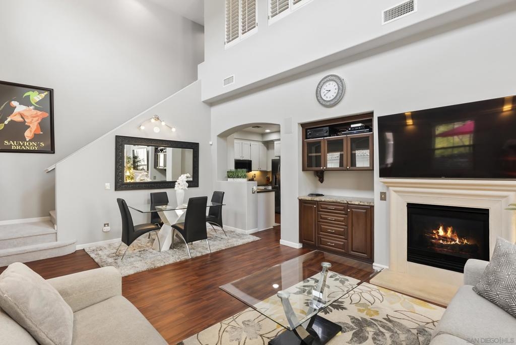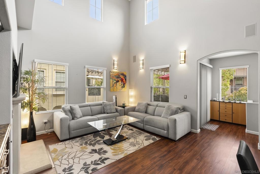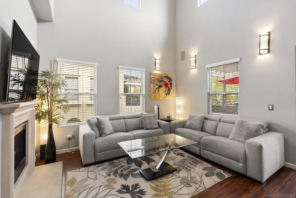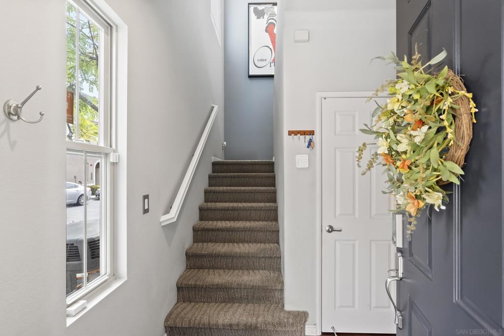 Don't miss this beautifully upgraded townhome, perfectly situated near Fashion Valley Mall, top-rated restaurants, the stadium, and major transportation hubs. This home offers both style and convenience in a gated community with meticulously maintained grounds. Featuring a spacious master suite upstairs with two walk-in closets, this bright and airy home boasts high-volume ceilings and large windows that welcome an abundance of natural light. The main level includes a second bedroom—ideal as an office or guest room as well as a full bathroom. Separate laundry room for added convenience with storage! May show for back-up offers Enjoy modern comforts such as stainless steel appliances, a smart refrigerator, plantation shutters, and a cozy fireplace. Step outside to your private balcony, perfect for morning coffee or evening relaxation. With a direct-access attached garage and a prime location, this townhome truly has it all.