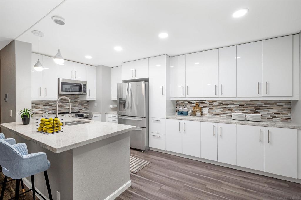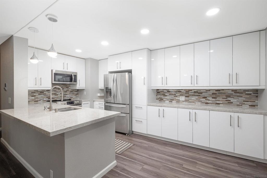 Completely upgraded 2 BR condo at Mission Ridge in Mission Valley. . Custom Kitchen with Corian counters, tile backsplash, beautiful cabinetry with lots of pull outs and many extra cabinets. Lots of counter space. Stainless steel appliances, pendant and recessed lighting. Large living room w/fireplace that leads to an enclosed balcony w/custom lighting and built ins overlooking the greenbelt. Living Room with gas fire place, ceiling fan/light. Bathrooms with custom showers, custom lighting, pedestal sinks. Vinyl Plank Flooring throughout. No expense spared. Nice sized bedrooms with plantation shutters, overlooking the greenbelt. Extra storage cabinets built in under the windows. Partially carpeted bedrooms, and vinyl plank floors. Master closet with built ins and a second closet too. Inside laundry and common laundry room. Covered assigned parking. Complex features tennis, pool, fitness room. Centrally located. Close to Snapdragon Stadium, shopping, Restaurants. Minutes to the I-8, and I-15 freeways. Minutes to the trolley, easy commute downtown, 15 minutes to the beach. When you show this unit, you and your clients will be very impressed with the upgrades.