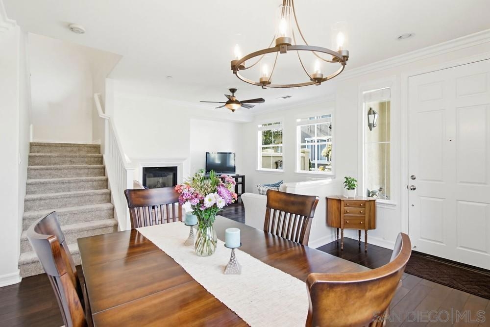 $999,000 - $1,059,000. Welcome to 10452 Whitcomb Way #166, a beautifully updated 3-bedroom, 2.5-bath home with a versatile loft. This Original Owner home has a recently painted interior is complemented by elegant crown molding, engineered hardwood flooring, 2" wood blinds and ceiling fans throughout. The kitchen features updated appliances and opens to comfortable living and dining spaces, perfect for everyday living or entertaining. Living room with vaulted ceiling and fireplace. (See Supplement). Upstairs, enjoy brand-new carpet in all bedrooms along with a spacious loft ideal for a home office, media room, or play area. Spacious Master Suite with walk-in closet, mirrored wardrobe doors and dual vanity sinks. Thoughtful updates and a functional floor plan make this home truly move-in ready. Complex features a tot lot, pool and spa. Close to shopping, restaurants, easy freeway access and don't forget the Award Winning Poway Unified School District. Don't miss this wonderful Home.