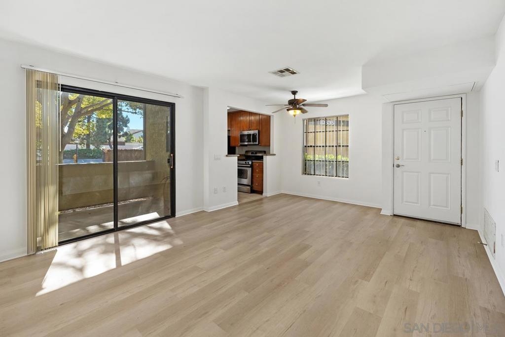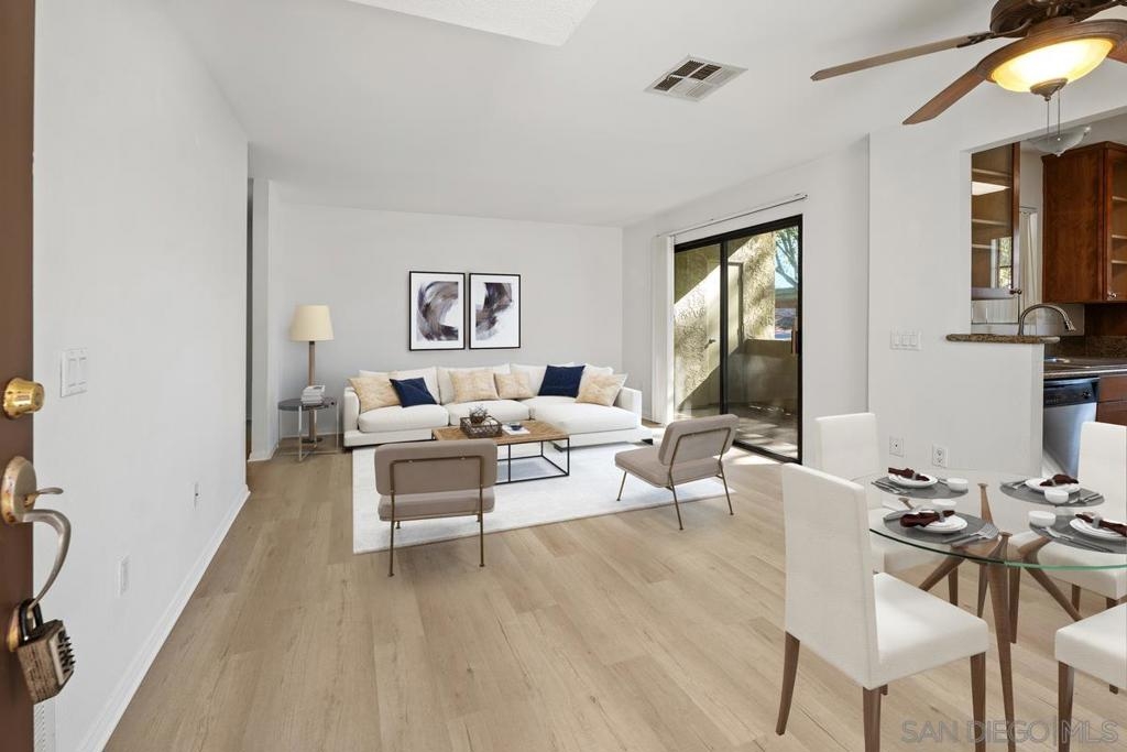 Home for Sale in Mira Mesa enjoy the Arbor Ridge! VA approved Complex. Wonderful corner ground floor location with many upgrades. Large 2 Bedroom 2 Bath. Granite counter tops, modern stainless steel appliances with gas stove, all-in-one under the counter washer dryer, newer AC heating, under warranty through 2029, private balcony with views of green belt. Newer vinyl flooring, and freshly painted. Conveniently located between Sorrento Valley and the heart of Mira Mesa. This desirable corner unit with open floor plan has 920 square feet with dual primary suites. This home comes with two assigned parking spaces #108 and #77 one is covered. Residents will enjoy access to a gym fitness room, pool and spa. Tons of natural light floods the corner unit through large windows. Located a short distance to freeway access, schools, hiking trails, public transportation, beaches, and businesses. Large sliding glass door from the living room onto private outdoor patio covered ideal for year-round entertaining and enjoying the views. Come buy this well-maintained condo today! 2 photos that have staging are virtual. Home for Sale in Mira Mesa enjoy the Arbor Ridge! VA approved Complex. Wonderful corner ground floor location with many upgrades. Large 2 Bedroom 2 Bath. Granite counter tops, modern stainless steel appliances with gas stove, all-in-one under the counter washer dryer, newer AC heating, under warranty through 2029, private balcony with views of green belt. Newer vinyl flooring, and freshly painted. Conveniently located between Sorrento Valley and the heart of Mira Mesa. This desirable corner unit with open floor plan has 920 square feet with dual primary suites. This home comes with two assigned parking spaces #108 and #77 one is covered. Residents will enjoy access to a gym fitness room, pool and spa. Tons of natural light floods the corner unit through large windows. Located a short distance to freeway access, schools, hiking trails, public transportation, beaches, and businesses. Large sliding glass door from the living room onto private outdoor patio covered ideal for year-round entertaining and enjoying the views. Come buy this well-maintained condo today! 2 photos that have staging are virtual.