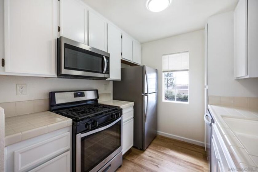 Welcome to this bright and inviting upper-level residence in the desirable Mira Mesa area of San Diego. The spacious living area features a cozy fireplace and abundant natural light, creating a comfortable space to relax or entertain. The home has been thoughtfully remodeled with new flooring, freshly painted kitchen cabinetry, and stainless steel appliances. An in-unit washer and dryer add everyday convenience. A private covered balcony extends from the living space, offering a spot to enjoy fresh air and neighborhood views. The home’s well-designed layout includes a generously sized living and dining area with large windows and a welcoming entry. Residents enjoy access to a community pool, along with well-maintained grassy areas and walkways throughout the community. Ideally located near major employment centers, shopping, dining, and outdoor recreation, with convenient access to the I-15 and I-805 freeways for easy commuting throughout San Diego. Enjoy comfortable living in one of San Diego’s most centrally located neighborhoods.