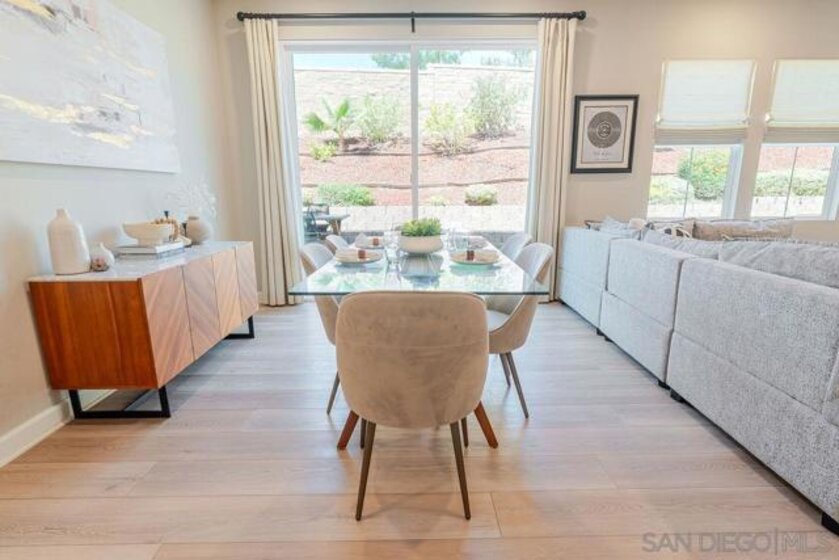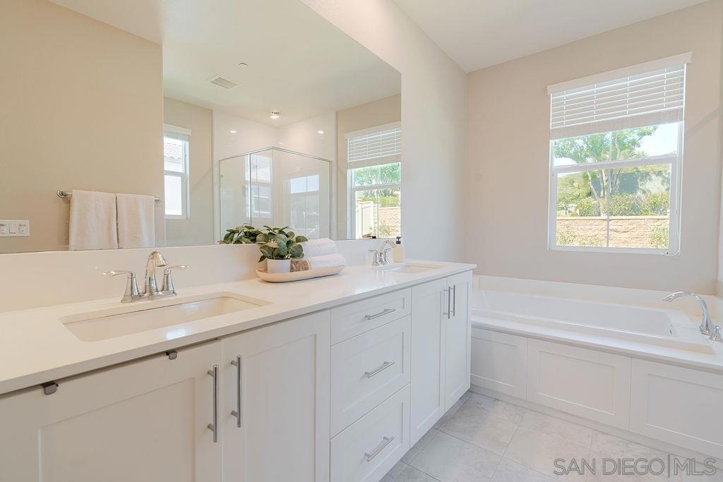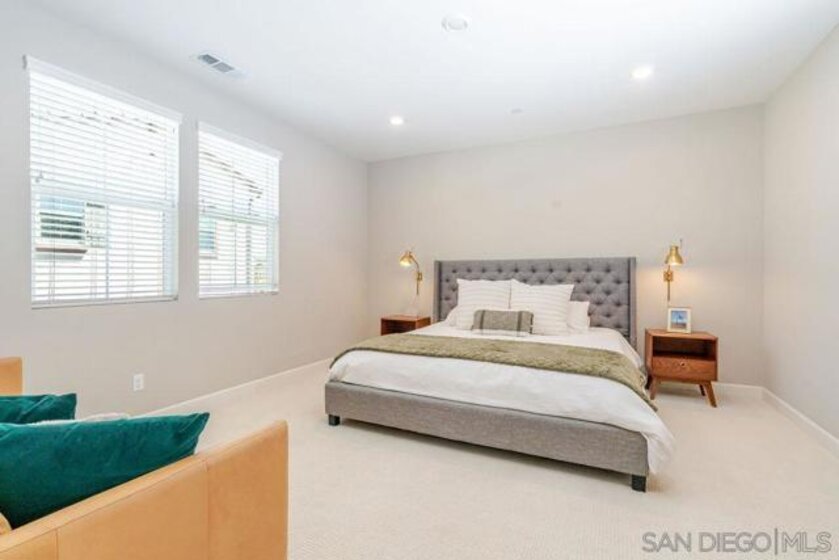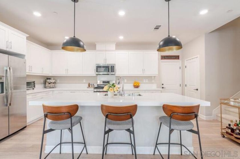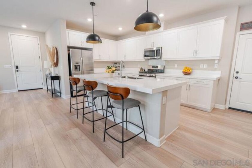 Welcome to this beautifully designed, nearly new residence 3 at the Pavilion Pacific Village in the highly desirable Rancho Peñasquitos community of San Diego. Built in 2021 by Lennar, this spacious 4-bedroom, 3 full bathroom home offers approximately 2,005 square feet of thoughtfully designed living space, blending modern comfort with everyday functionality. Step inside to discover a bright and open floor plan, ideal for both relaxing and entertaining. The main living areas flow seamlessly, creating an inviting atmosphere filled with natural light. A well-appointed kitchen anchors the home, offering ample space for gathering, cooking, and hosting. The versatile Smarthome layout includes a full bedroom and bathroom downstairs—perfect for guests, multigenerational living, or a private home office. Upstairs, you’ll find generously sized bedrooms, including a spacious primary suite designed for comfort and retreat. Highlights include a 2-car garage plus 2 additional spots on your long driveway. Energy-efficient features typical of newer builds. The home is part of a thoughtfully planned community set on a 10-acre parcel, offering a well-maintained environment with shared open spaces. It has one of the largest backyards with a built-in firepit and turf. Located within the award-winning Poway Unified School District and just minutes from shopping, dining, parks, and major freeways, this home offers the perfect balance of convenience and suburban tranquility. Don’t miss this opportunity to own a turnkey home in one of North County San Diego’s most sought-after neighborhoods.