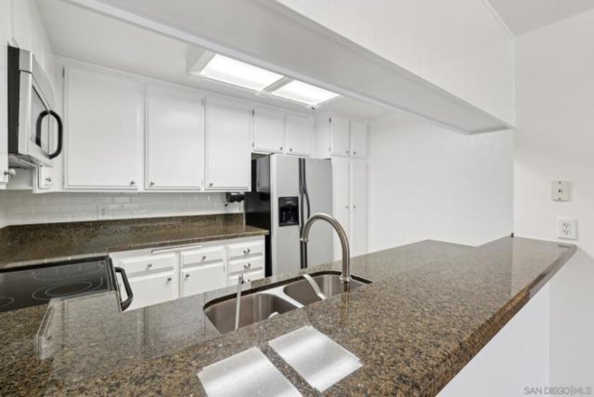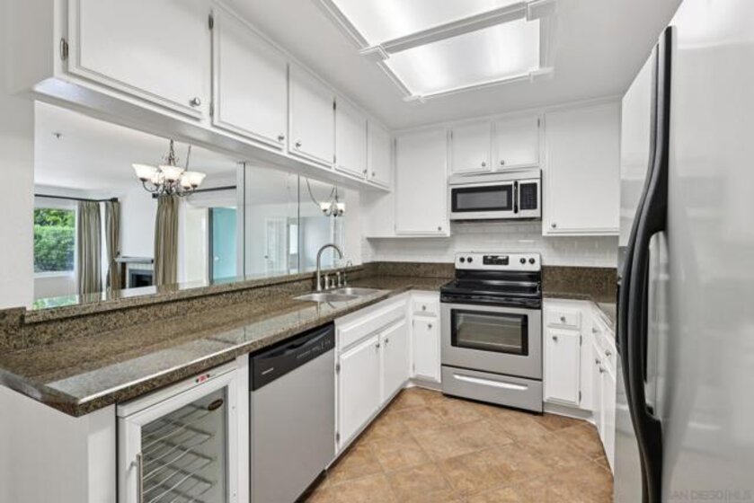 Located in the highly desirable community of Tierrasanta in San Diego, this beautifully updated 2-bedroom, 2-bathroom condo offers 1,118 sq ft of light-filled living space in a quiet, park-like setting. This corner unit overlooking a fountain and lush landscaping provides exceptional privacy and tranquility rarely found in condo living. Inside, you’ll find an updated kitchen with wine refrigerator and full-size refrigerator, fresh neutral paint, and modern easy-care flooring throughout. The spacious living room features a gas fireplace, creating a warm and inviting atmosphere. The functional layout includes an optional in-unit laundry space, a water filtration system, and generous storage—including additional patio storage. This home includes one assigned parking space in a secure underground community garage, plus off-street guest parking. The HOA amenities enhance lifestyle convenience with community amenities including heated pool, spa, sauna, BBQ and picnic areas, and pickleball courts amidst beautifully maintained grounds. El Dorado Greens is primarily a smoke-free community.