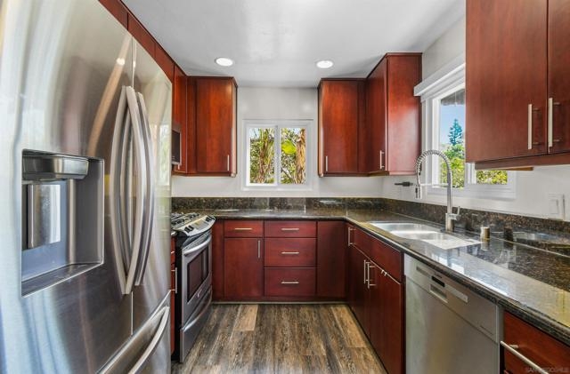 Price Improvement - REDUCED $25K! Enjoy sweeping downtown skyline views from this beautifully updated condo in the heart of Golden Hill. Featuring an open floor plan with abundant natural light, this unit boasts a freshly painted interior, spacious bedrooms, vinyl plank flooring throughout, a remodeled primary bathroom for a spa-like experience, and a private patio overlooking a tree-lined street. The kitchen is equipped with sleek, updated appliances (Frigidaire Gallery & Professional Series) & the unit integrates seamlessly with smart home technology – building wired with Google Fiber Internet. Additional features include in-unit laundry (Full Sized, GE), ample storage and closet space, central heat & A/C + ceiling fans in every room, and 2-car tandem parking in a secure, gated garage—plus an owner-exclusive Universal EV charging station wired directly into the spot + dedicated storage space. This boutique complex, built in 2007 and home to just 29 units, is professionally managed and has recently undergone extensive upgrades and repairs, ensuring comfort and peace of mind for years to come. Easily walk to Golden Hill Park, Balboa Park Golf Course, Grape Street Dog Park, or explore the great eateries in Golden Hill and South Park. With quick access to Downtown San Diego, San Diego International Airport, and major highways (I-5, I-163, I-94), commuting and enjoying the city couldn’t be easier. Some Photos have been Virtually Staged. Recent Building Upgrades Include- Upgraded Lighting & Security Camera throughout community, Building Wide Google Fiber Internet Installation, Full Exterior Painting, Fountain Maintenance, Balcony waterproofing & improvements. HOA covers all exterior features including balconies, bridges, landings & roof. Enhanced Fire Protection, Bi-weekly community cleaning, weekly landscaping, Monthly Exterior Pest/Termite Control & a Professional and Responsive Management Company. B2VAB4COE.