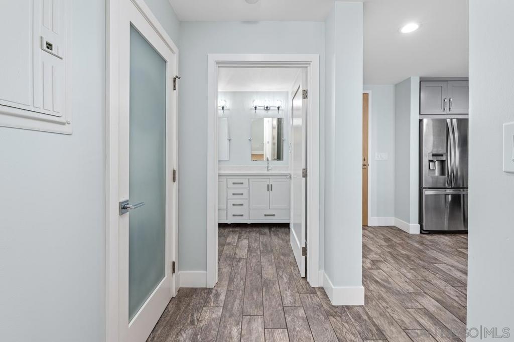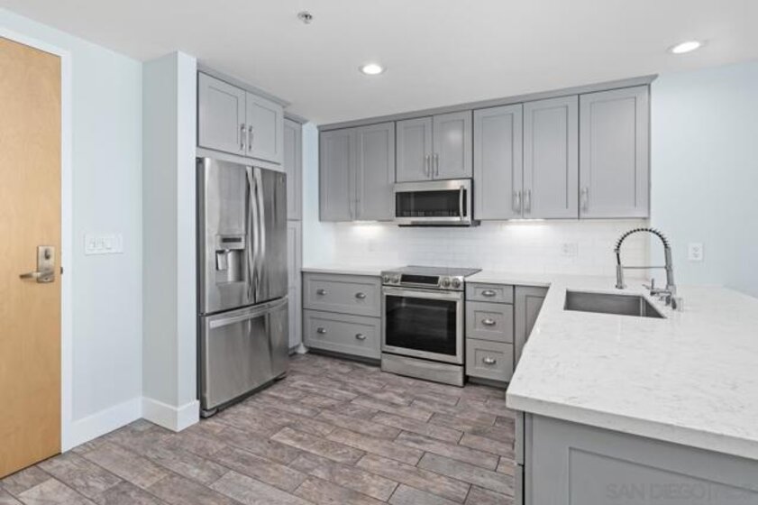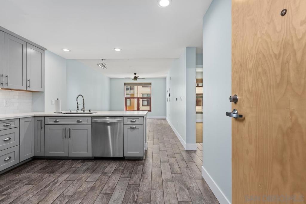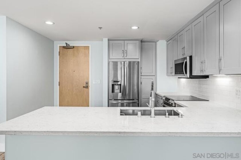 Welcome to Metrome, a contemporary mid-rise residence in the heart of Downtown San Diego, just moments from Petco Park, the Gaslamp Quarter, top dining, and the Marina District. Ideally positioned with easy access to major freeways, this location offers the perfect balance of vibrant city living and everyday convenience. This beautifully upgraded, quiet interior 1-bedroom, 1-bath residence features a bright, open layout with large windows that fill the space with natural light. The home showcases modern finishes throughout, including white countertops, stainless steel appliances, upgraded laminate flooring, premium bedroom carpeting, and custom paint. Enjoy the convenience of in-unit laundry, one assigned parking space, and a private storage unit.
