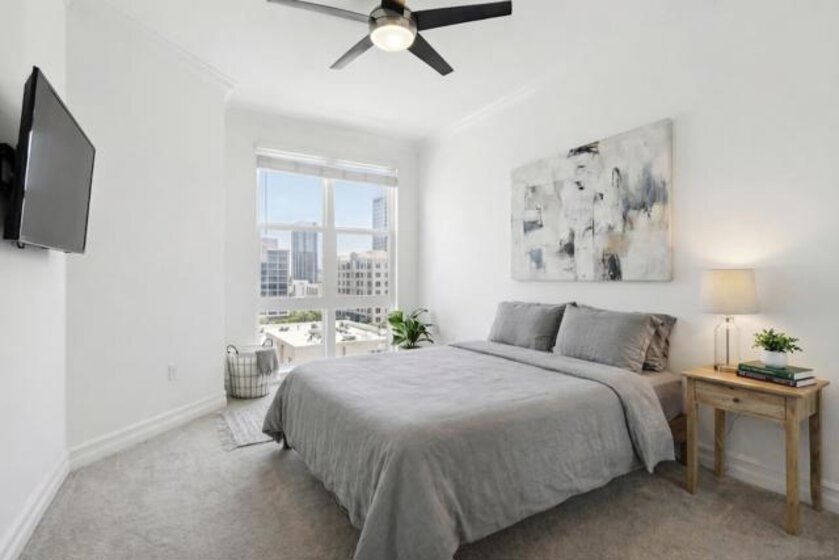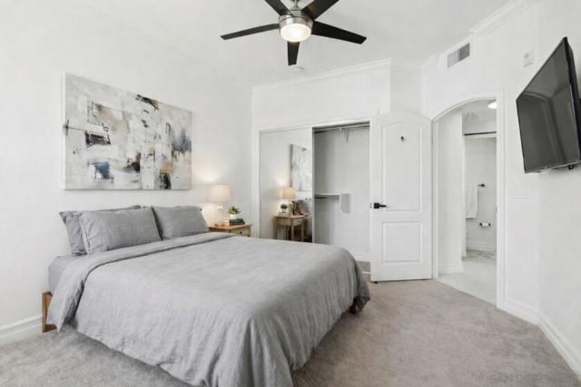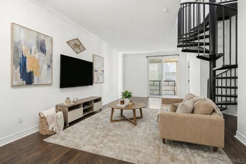 Located in the heart of desirable East Village, WALKING DISTANCE to everything! Little Italy, Petco Park, the Trolley, San Diego Bay, the airport. Just steps from everything DOWNTOWN San Diego has to offer, including acclaimed RESTAURANTS, NIGHTLIFE, bars, breweries, and boutique shopping. VA Approved! Spacious, two bedrooms, two bathrooms, two parking spaces, two storage spaces, balcony and PRIVATE ROOFTOP DECK! Perfect for pet owners! This bright and immaculate 6th-floor, top-floor condo offers floor-to-ceiling windows and exceptional natural light throughout. Rarely found downtown, the home features two private outdoor spaces, including a balcony off the living room and a spiral staircase leading to a private rooftop deck—an incredibly rare offering for downtown living. The residence is pristine and modern, showcasing custom cabinetry, stainless steel appliances, and sleek quartz countertops. Additional highlights include TWO FULL PARKING SPACES (not tandem) and TWO SPACIOUS STORAGE UNITS, providing convenience that’s hard to find in an urban setting.