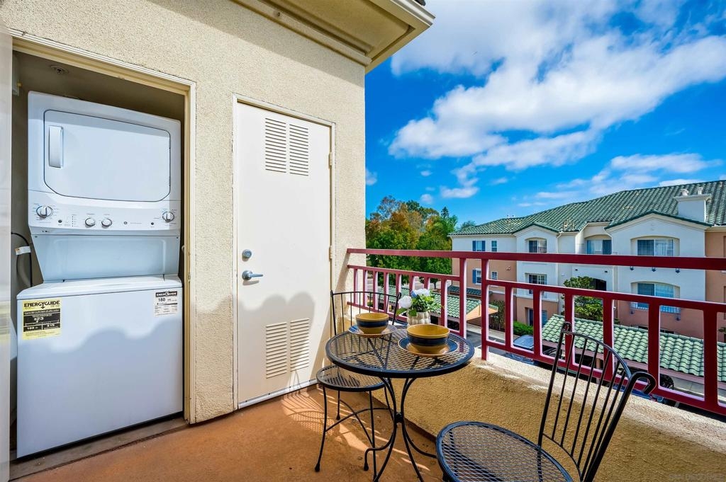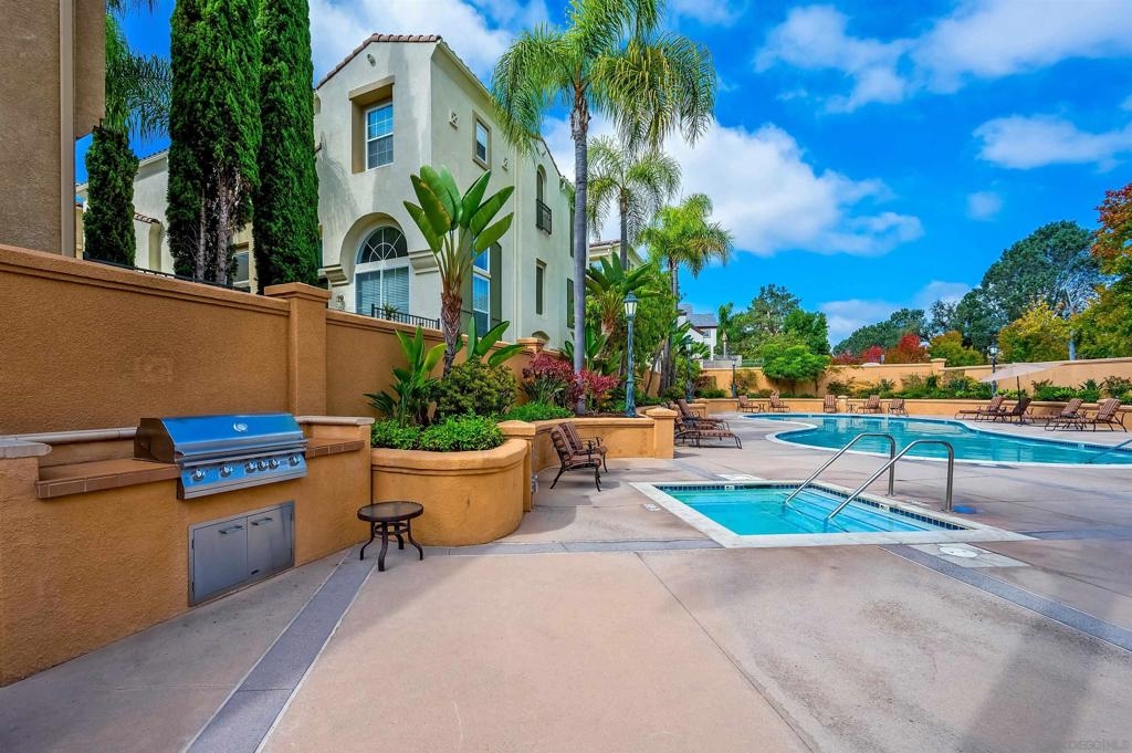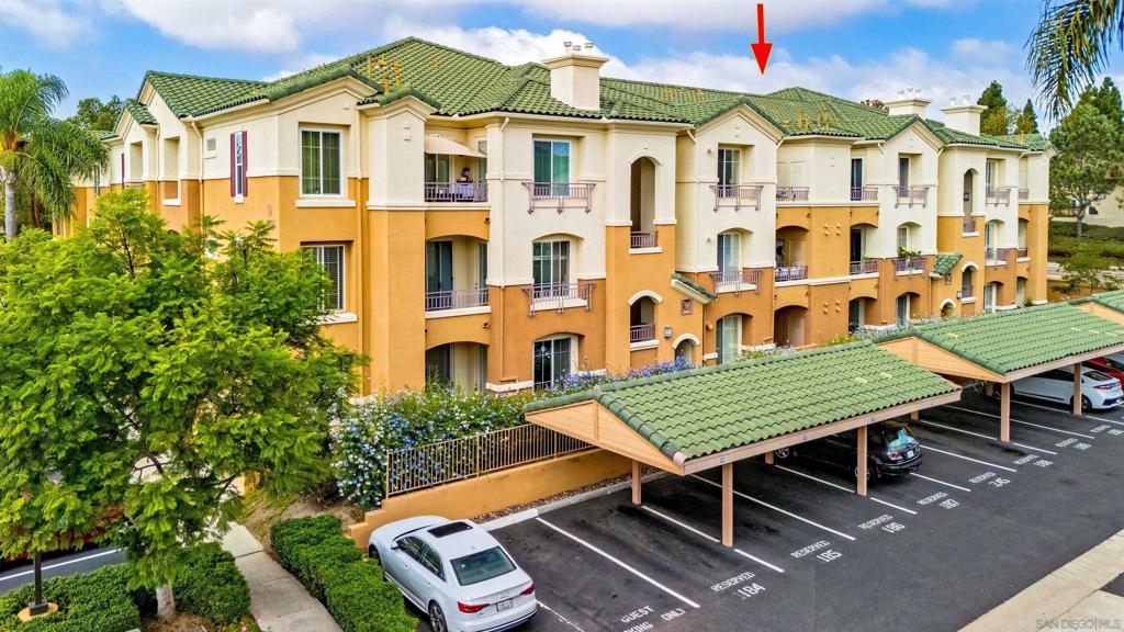 Top-floor retreat in the heart of Carmel Valley! This home comes with TWO dedicated parking spaces - a rare find for the community. This stunning 1 bed, 1 bath condo captivates with dramatic vaulted ceilings and a light-filled, open-concept floor plan. The spacious living area and large bedroom both provide access to a private balcony - with convenient in-unit laundry. As a resident, you'll enjoy resort-style amenities including a sparkling pool, hot tub, and a fitness center. Your new home is ideally located near the best shopping and restaurants in the area. Enjoy effortless travel with quick access to the I-5 and SR-56 freeways; all of San Diego is within your reach. Don't miss this perfect blend of comfort and convenience!