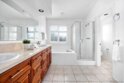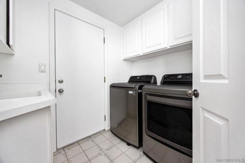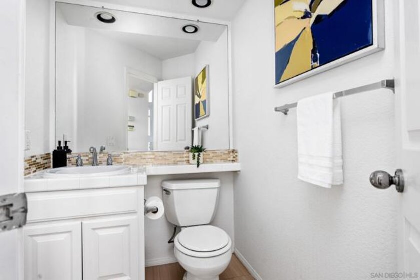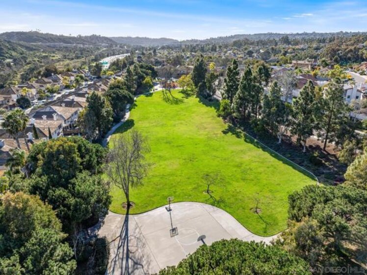 This beautifully designed twinhome offers the privacy and presence of a detached residence, enhanced by a turfed front yard and a truly private setting. Step inside to soaring second-story ceilings and an abundance of natural light that highlights the warm wood flooring throughout the main living areas. The kitchen opens seamlessly to the family room, creating an ideal space for both everyday living and entertaining, and features a center island, granite countertops, rich dark wood cabinetry, and a cozy fireplace anchoring the space. Upstairs, a versatile loft provides flexible living options, while one bedroom showcases French doors and plantation shutters, with wood flooring throughout the upper level. The updated bathroom offers a fresh, modern feel. Additional highlights include a custom closet, two bedrooms with walk-in closets, a third bedroom, and a dedicated laundry room. Ideally located near shopping, dining, and parks—including Del Mar Trails Park—with convenient access to State Route 56 and Interstate 5, this thoughtfully appointed home blends comfort, style, and accessibility.