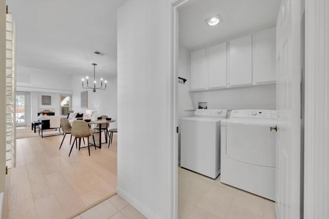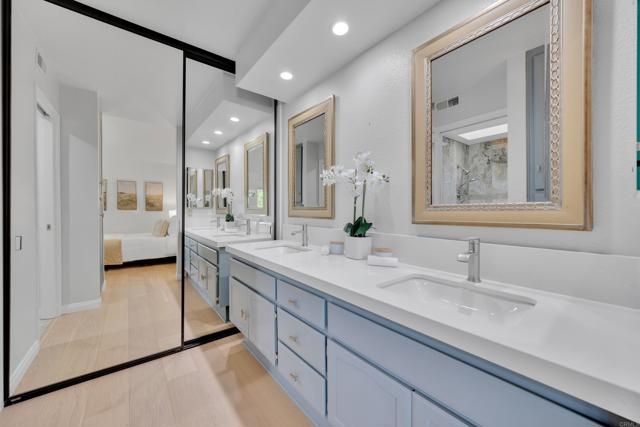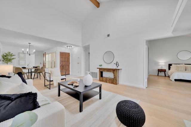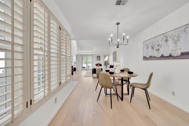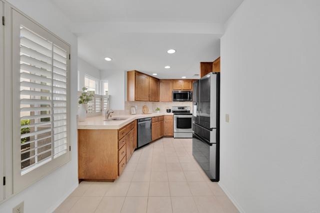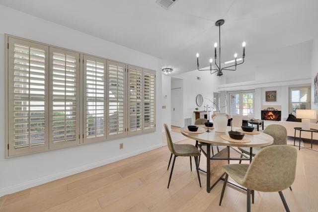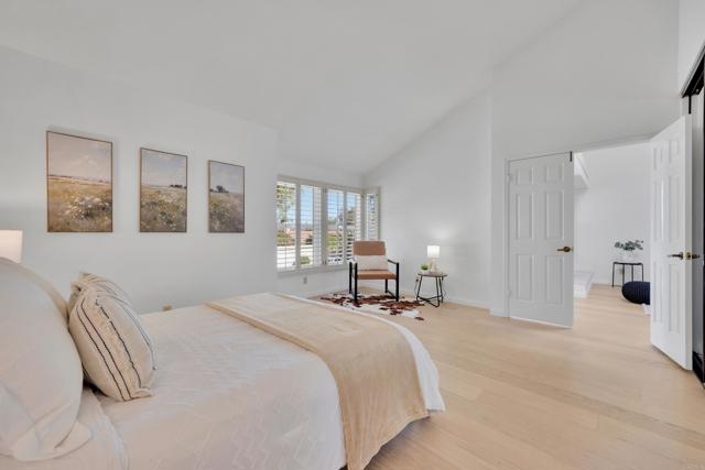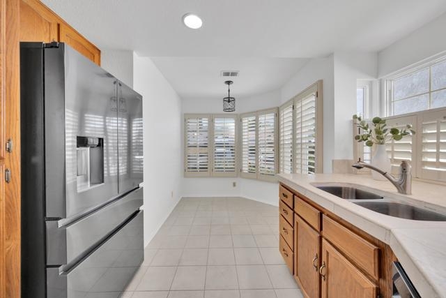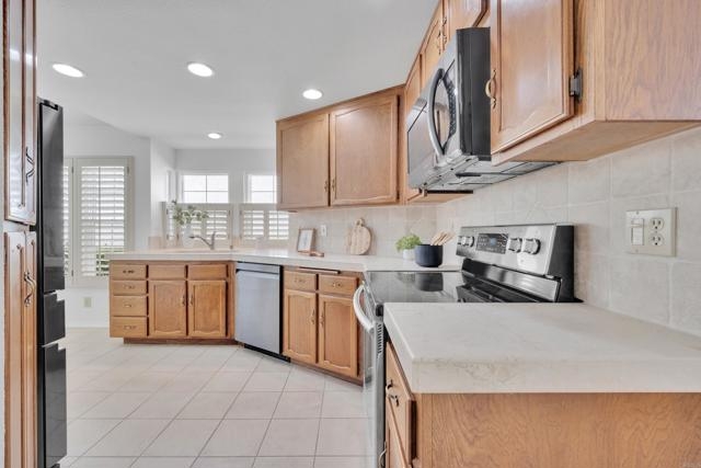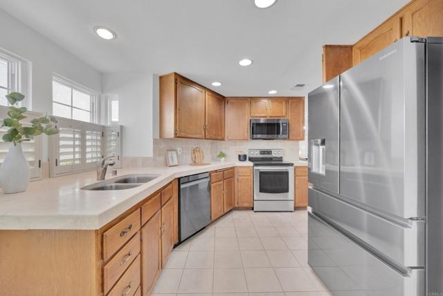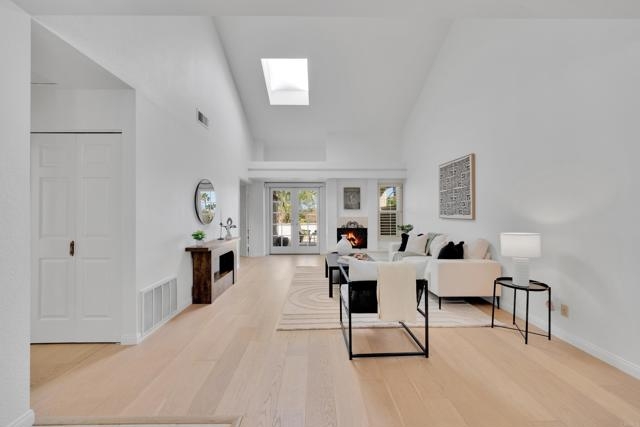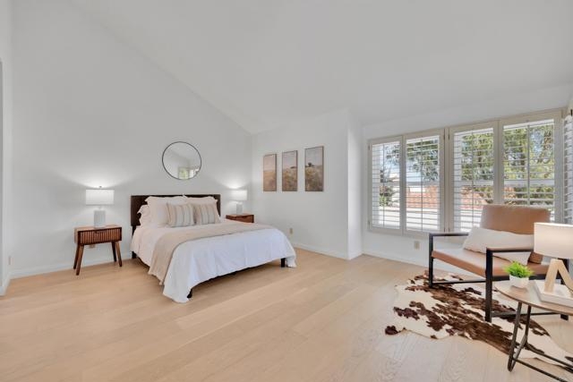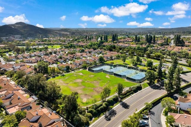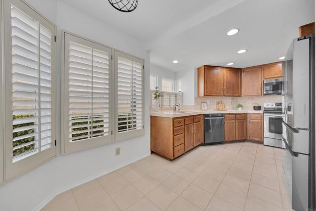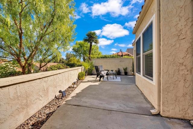 Nestled at the end of a quiet cul-de-sac, this beautifully maintained home offers the perfect blend of comfort, convenience, and style. Step inside and you’ll immediately notice the bright, airy feel created by vaulted ceilings in both the living room and the primary suite, complemented by two skylights that fill the home with natural light. The open and inviting floor plan features a spacious living room that flows seamlessly into a formal dining area — ideal for entertaining. The oversized kitchen offers abundant counter space, a cozy eat-in breakfast nook framed by a charming bay window, and updated stainless steel appliances including a microwave, dishwasher, and refrigerator. Throughout the home, stunning white oak wood flooring adds a touch of modern elegance, while the inside laundry room and direct garage access add everyday convenience. Step outside to your private back patio and take in peaceful mountain-top views — the perfect spot to relax with a morning coffee or unwind after a long day. Residents of the Las Brisas community enjoy access to a variety of resort-style amenities, including Lucido Park with playground, tennis courts, multiple sparkling pools, and more. Located within the highly acclaimed Poway Unified School District, this move-in ready home truly has it all — exceptional location, thoughtful upgrades, and a welcoming neighborhood atmosphere.