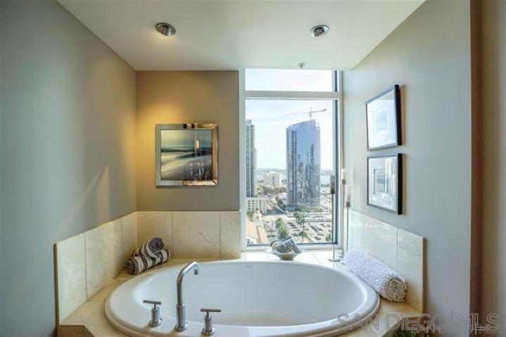 Sapphire luxury at its finest. This stunning 22nd-floor southwest-facing residence in the Columbia District offers approx. 1,707 sq. ft. with a private balcony showcasing sunset views toward the Pacific Ocean and one of a kind City Views. Features include a remodeled kitchen with built in Sub-Zero. Remodeled bathrooms, real hardwood floors, upgraded lighting and floor-to-ceiling windows with motorized solar shades throughout. Additional highlights include a large storage space, two side-by-side parking spaces with EV charger. Prime location just blocks from San Diego Bay and Little Italy. Internet included with HOA. Unit has a Nema Electrical Vehicle system. 2nd bedroom is the perfect home office with a beautiful Murphy bed.