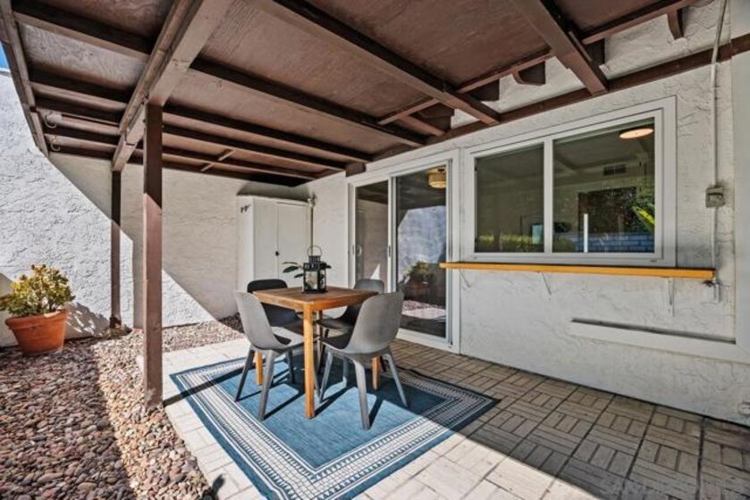 Welcome Home! This lovingly cared for SINGLE STORY condo is located in a highly regarded 55+ community. The home is ready to bring you joy, convenience, space, hobbies and more! The property features 2 bedrooms, 2 full bathrooms, a spacious living room with vaulted ceilings, plenty of windows allowing in abundant natural light, fireplace, sprawling back patio area fully covered and enclosed, kitchen and bathrooms have been tastefully updated throughout the years, all newer window coverings, HVAC for central air and heat, luxury vinyl plank and ceramic tile flooring, loads of space including two separate closets in the master bedroom plus a small shed in the backyard and a HUGE shed directly off the covered parking space. The Seven Oaks community is a 55+ plus community that is meticulously maintained to ensure lusch landscaping, walking trails, a pool and spa, plus a gym!