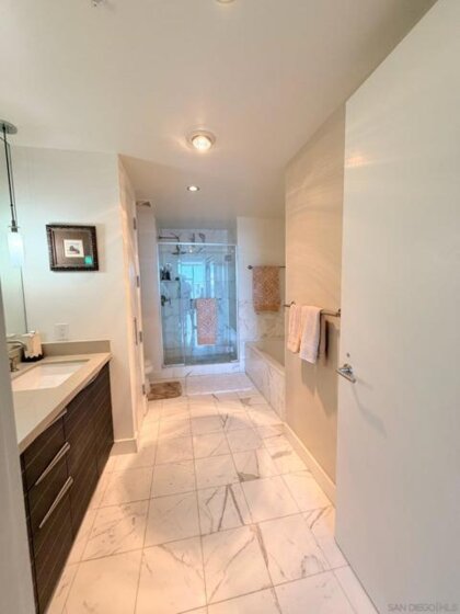 Luxurious high-rise living with breathtaking bay views from every room! Modern architecture designed with contemporary elegance and top-tier finishes. The gourmet kitchen is a chefs dream, equipped with high-end Viking appliances and sleek Snaidero cabinetry. Sip your morning coffee or enjoy a glass of wine out on the spacious balcony while taking in the mesmerizing sunsets. Both bedrooms have ensuite bathrooms and a third bathroom for guests. In addition, this unit offers privacy with no other condominiums having a view into the residence. Amenities galore: 24hr concierge and parking attendant, pool, spa, sauna, steam room, fitness center, library, moving screening room, amenity room, BBQs, cabanas and more. Side-by-side parking! Gross square footage are estimates only. Owner is Highly Motivated to sell.